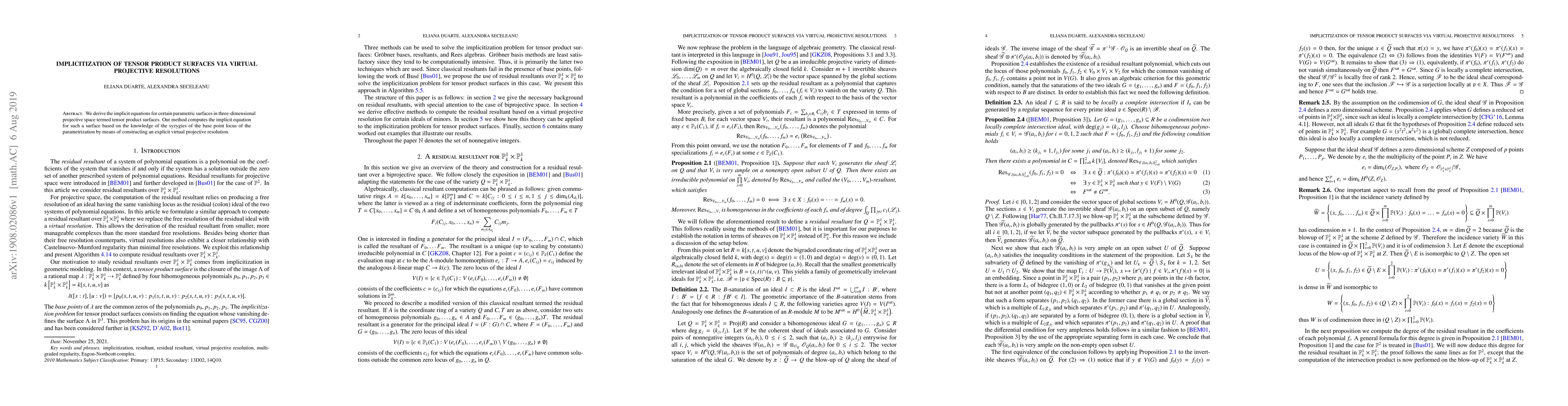 This paper develops a method for deriving implicit equations of tensor product surfaces in projective 3D space by leveraging the syzygies of the base point locus and constructing a virtual projective resolution. The approach provides a direct route to implicitization based on algebraic properties.