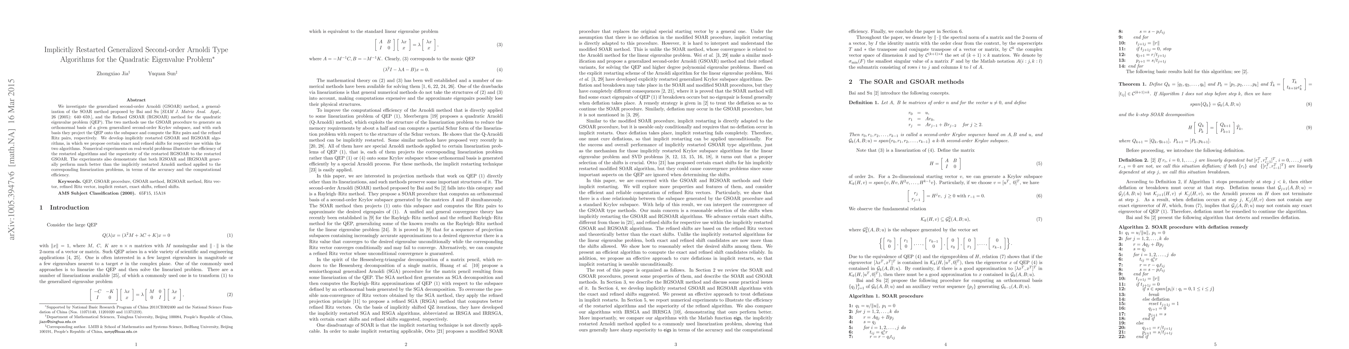 This paper proposes implicitly restarted versions of the generalized second-order Arnoldi (GSOAR) and refined GSOAR (RGSOAR) methods for solving the quadratic eigenvalue problem (QEP). Numerical experiments show that the restarted RGSOAR method outperforms the restarted GSOAR method and both perform better than the implicitly restarted Arnoldi method for linearization problems.