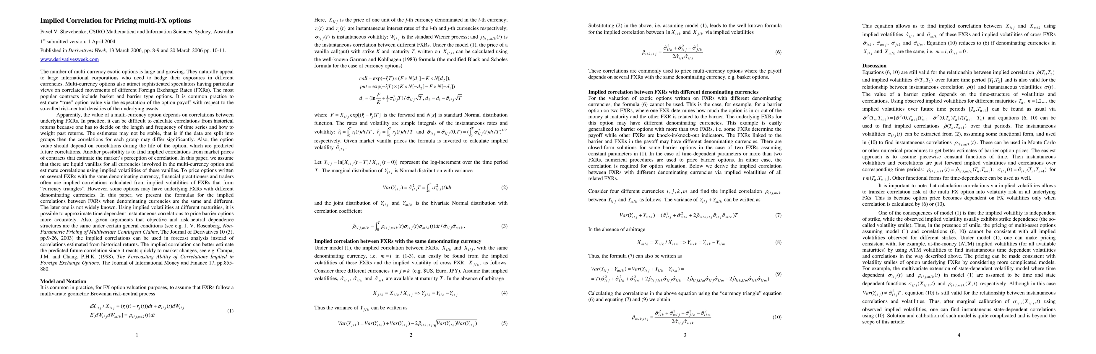 The research provides new formulas for implied correlations between FXRs with different denominating currencies, which can be used to price multi-currency options.