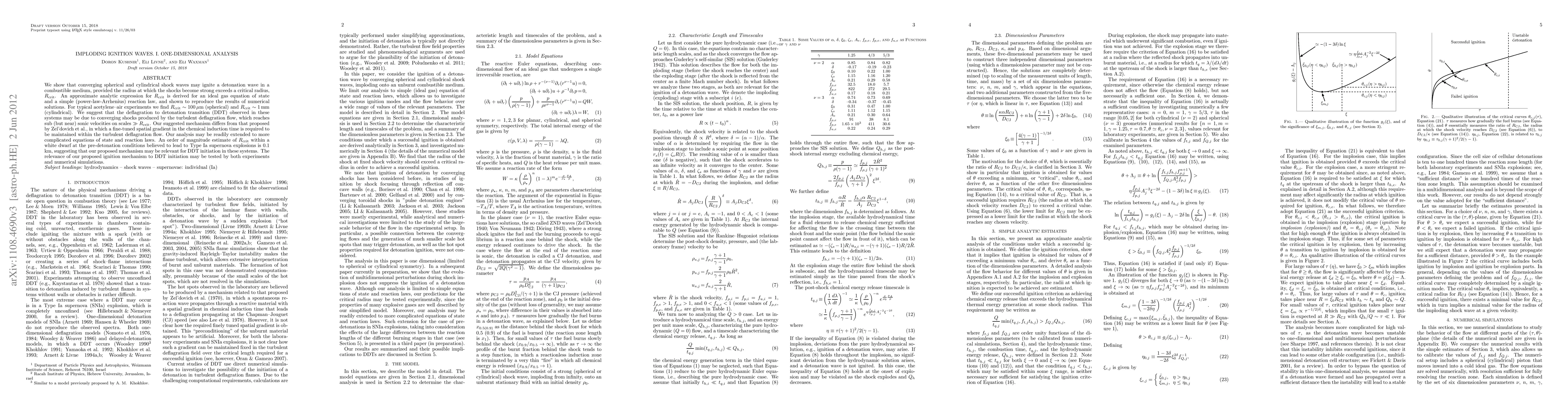 We show that converging spherical and cylindrical shock waves may ignite a detonation wave in a combustible medium, provided the radius at which the shocks become strong exceeds a critical radius, R_c. An approximate analytic expression for R_c is derived for an ideal gas equation of state and a simple (power-law-Arrhenius) reaction law, and shown to reproduce the results of numerical solutions. For typical acetylene-air experiments we find R_c~0.1 mm (spherical) and R_c~1 mm (cylindrical). We suggest that the deflagration to detonation transition (DDT) observed in these systems may be due to converging shocks produced by the turbulent deflagration flow, which reaches sub (but near) sonic velocities on scales >>R_c. Our suggested mechanism differs from that proposed by Zel'dovich et al., in which a fine-tuned spatial gradient in the chemical induction time is required to be maintained within the turbulent deflagration flow. Our analysis may be readily extended to more complicated equations of state and reaction laws. An order of magnitude estimate of R_c within a white dwarf at the pre-detonation conditions believed to lead to Type Ia supernova explosions is 0.1 km, suggesting that our proposed mechanism may be relevant for DDT initiation in these systems. The relevance of our proposed ignition mechanism to DDT initiation may be tested by both experiments and numerical simulations.