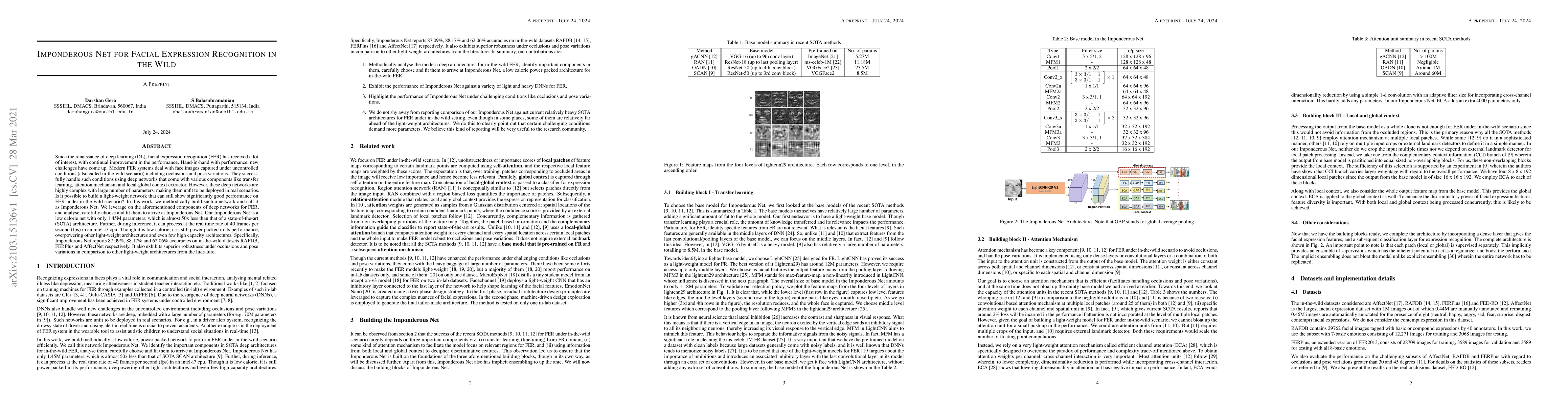 A new network called Imponderous Net is proposed for facial expression recognition in uncontrolled conditions, achieving 87.09% accuracy while being 50x lighter than state-of-the-art models.
