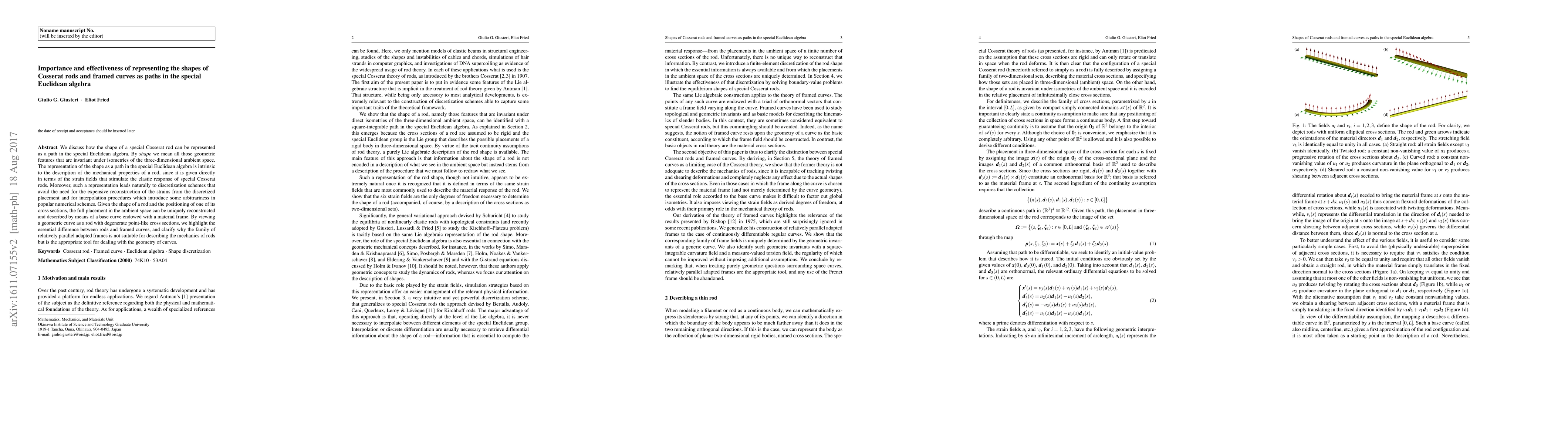 This paper explores the representation of Cosserat rods' shapes as paths in the special Euclidean algebra, emphasizing intrinsic mechanical properties and strain fields. It also highlights the advantages of this representation in numerical schemes and clarifies the distinction between rods and framed curves.