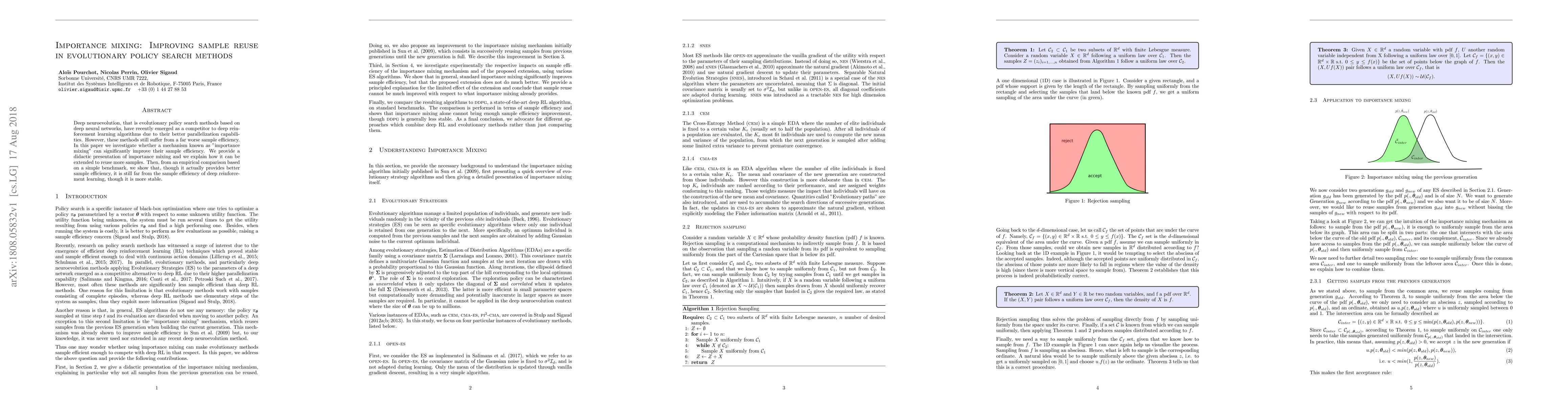 This paper investigates the effectiveness of importance mixing in improving sample efficiency for deep neuroevolution methods, finding it offers better efficiency but still lags behind reinforcement learning.