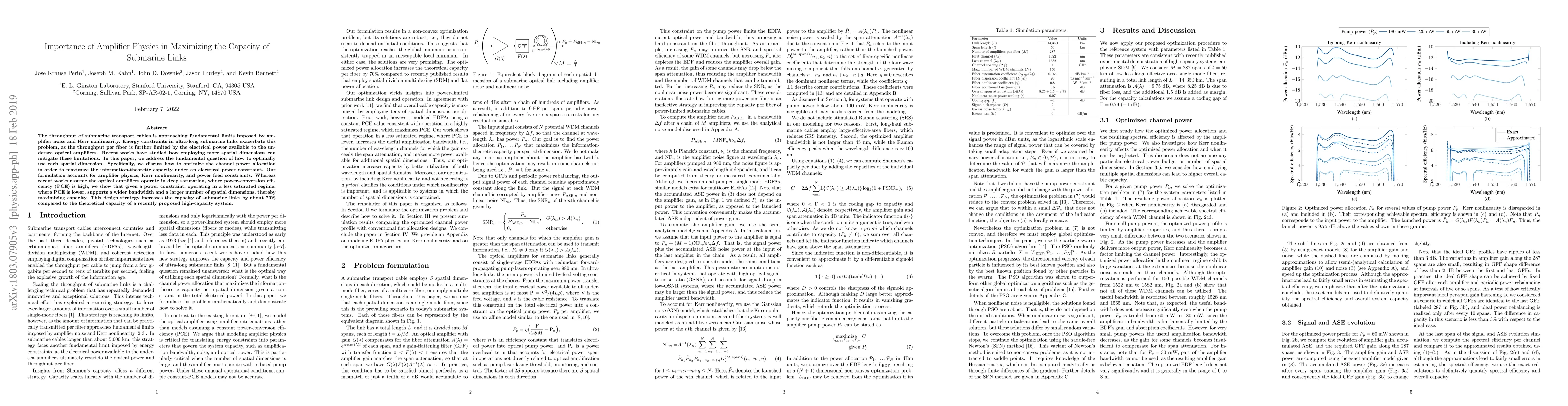 This paper explores optimizing channel power allocation to maximize the capacity of submarine transport cables, considering amplifier physics, Kerr nonlinearity, and power constraints. It demonstrates that operating optical amplifiers in a less saturated regime can enhance bandwidth and support more spatial dimensions, increasing capacity by about 70% compared to high-capacity systems.