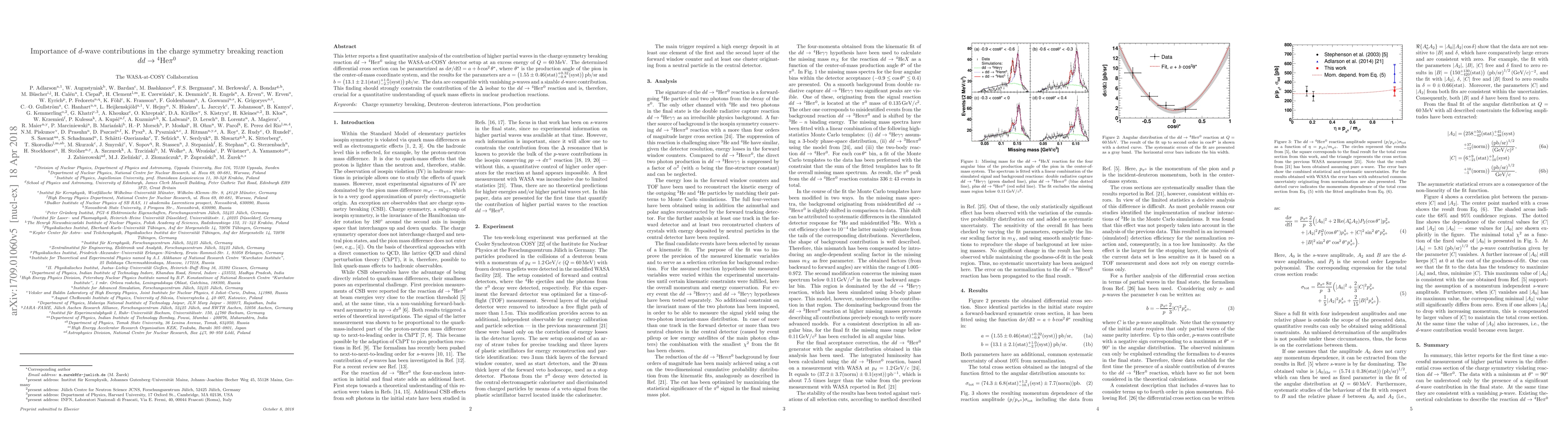 This letter reports a first quantitative analysis of the contribution of higher partial waves in the charge symmetry breaking reaction $dd \to {}^4\text{He}\pi^0$ using the WASA-at-COSY detector setup at an excess energy of $Q = 60$ MeV. The determined differential cross section can be parametrized as $\text{d}\sigma/\text{d}\Omega = a + b\cos^{2}\theta^*$, where $\theta^*$ is the production angle of the pion in the center-of-mass coordinate system, and the results for the parameters are $a = \left(1.55 \pm 0.46 (\text{stat}) ^{+0.32}_{-0.8} (\text{syst}) \right)$ pb/sr and $b = \left(13.1 \pm 2.1 (\text{stat}) ^{+1.0}_{-2.7} (\text{syst})\right)$ pb/sr. The data are compatible with vanishing p-waves and a sizable d-wave contribution. This finding should strongly constrain the contribution of the $\Delta$ isobar to the $dd \to {}^4\text{He}\pi^0$ reaction and is, therefore, crucial for a quantitative understanding of quark mass effects in nuclear production reactions.