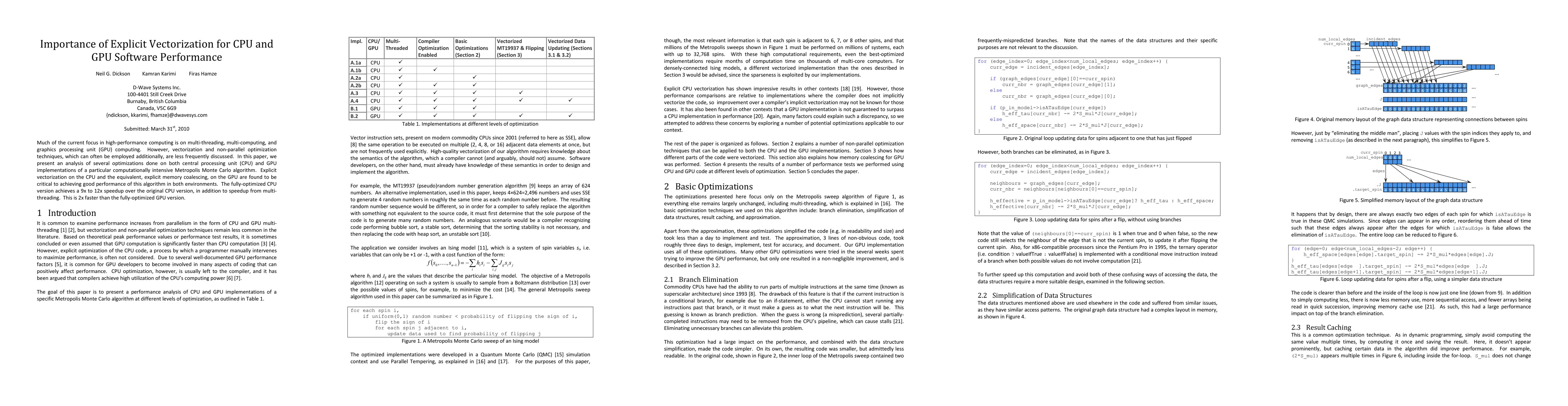 This paper analyzes optimizations for a Metropolis Monte Carlo algorithm on both CPU and GPU, highlighting the importance of explicit vectorization for CPU and explicit memory coalescing for GPU to achieve high performance. The fully-optimized CPU version achieves a significant 9x to 12x speedup, outperforming the fully-optimized GPU version by a factor of 2.