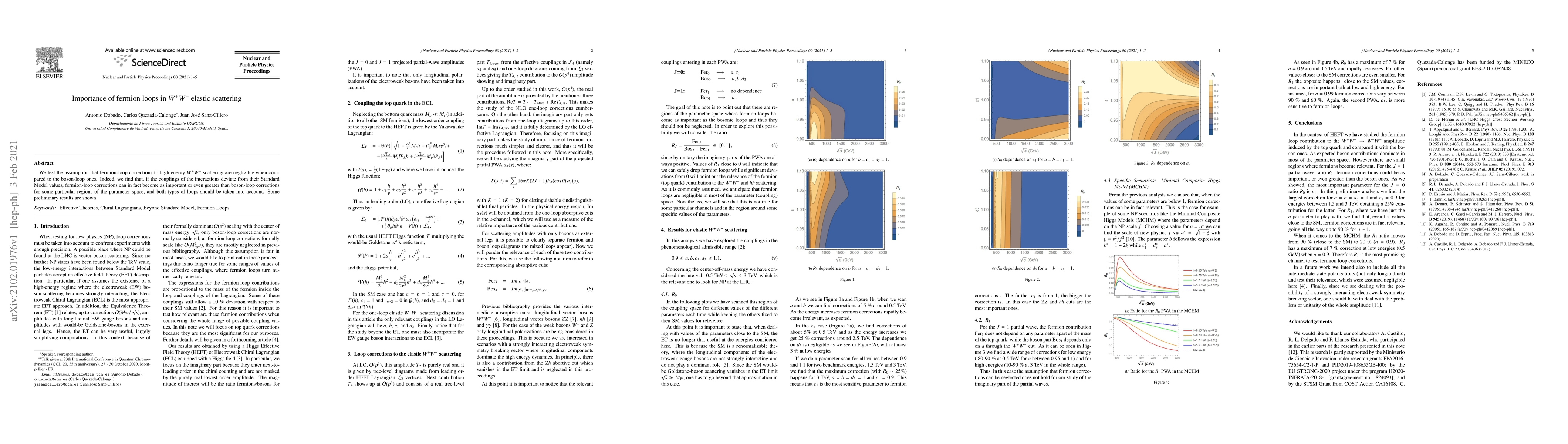 We test the assumption that fermion-loop corrections to high energy $W^+W^-$ scattering are negligible when compared to the boson-loop ones. Indeed, we find that, if the couplings of the interactions deviate from their Standard Model values, fermion-loop corrections can in fact become as important or even greater than boson-loop corrections for some particular regions of the parameter space, and both types of loops should be taken into account. Some preliminary results are shown.