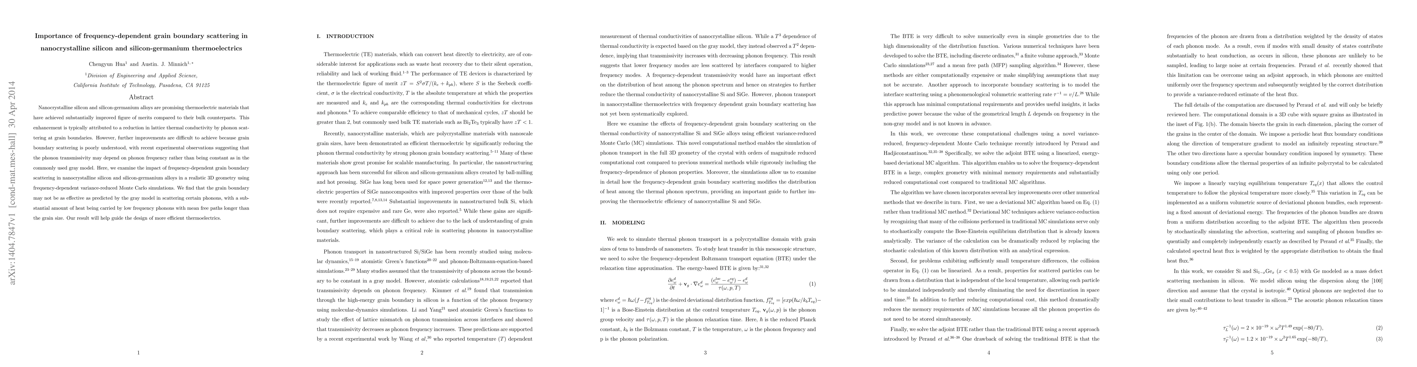 This paper investigates the role of frequency-dependent grain boundary scattering in nanocrystalline silicon and silicon-germanium thermoelectrics, revealing that low-frequency phonons can travel longer distances than predicted by the gray model, thus hindering further improvements in thermoelectric efficiency. The findings suggest a need for more nuanced models to guide future material design.