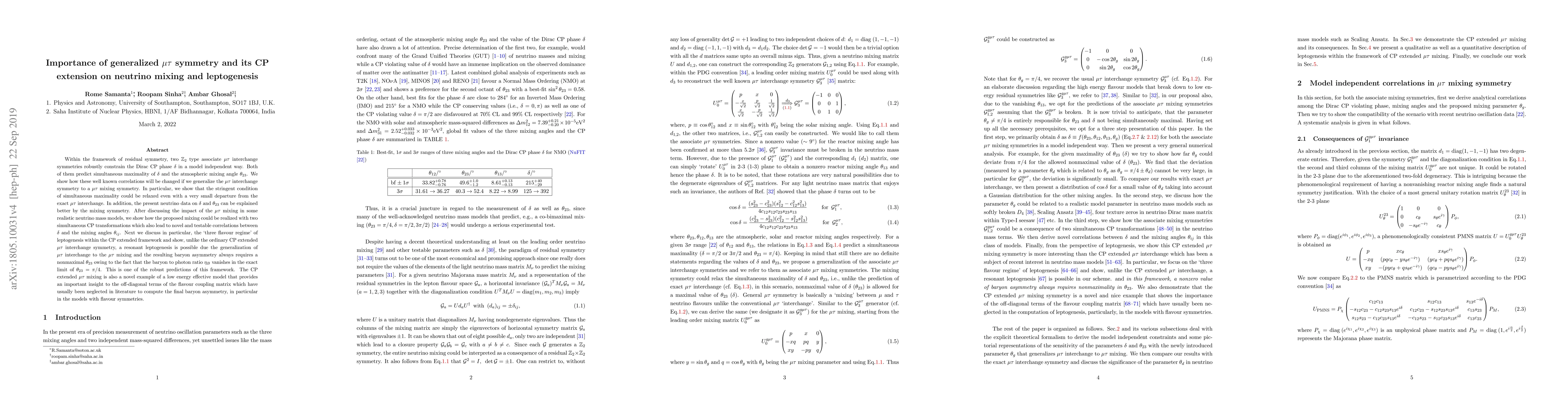This paper explores the implications of generalized $\mu\tau$ symmetry and its CP extension on neutrino mixing and leptogenesis. It demonstrates that relaxing the exact $\mu\tau$ interchange symmetry can better explain current neutrino data and leads to novel correlations between CP phase $\delta$ and mixing angles.