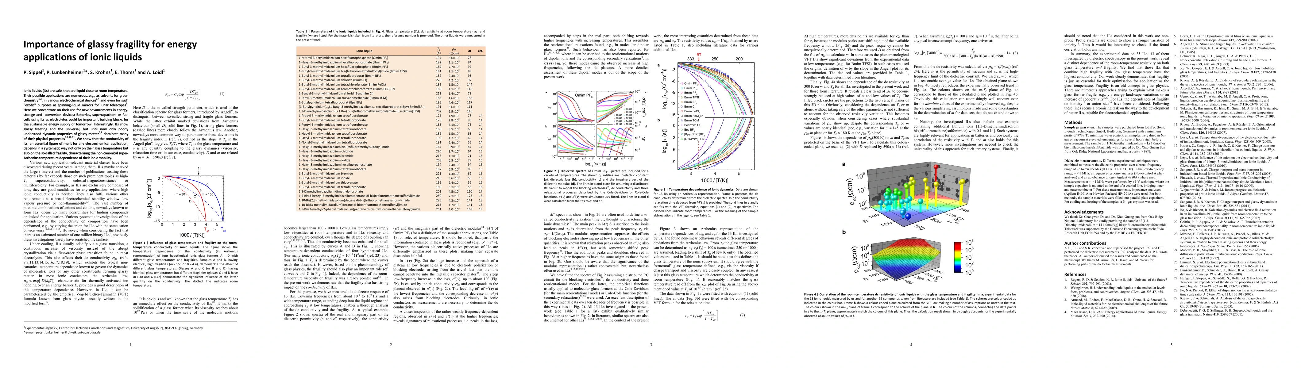 Understanding the relationship between glassy fragility, Tg, and conductivity in ILs is crucial for optimizing their performance in energy storage and conversion devices, such as batteries, supercapacitors, and fuel cells.