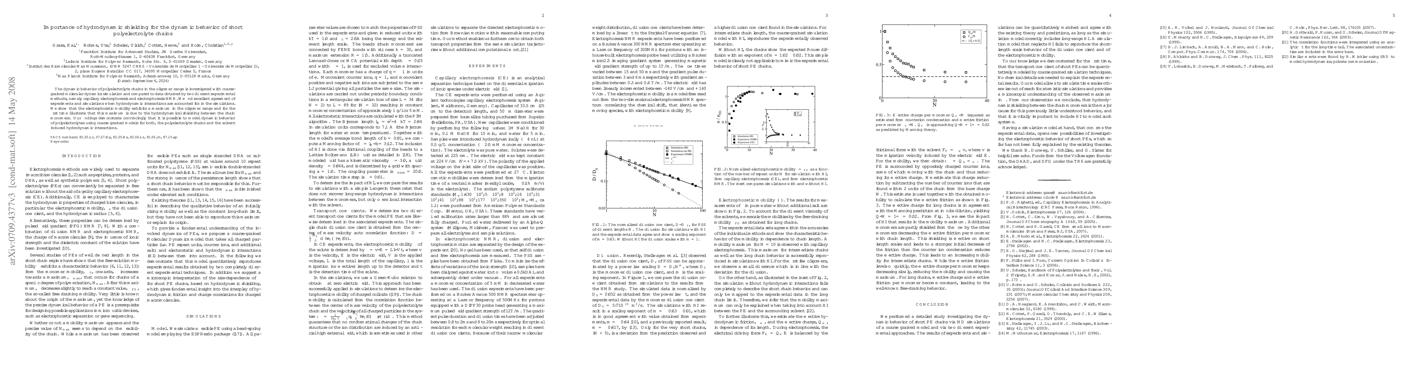 This study explores the dynamic behavior of short polyelectrolyte chains using coarse-grained molecular dynamics simulations, revealing a maximum in electrophoretic mobility due to hydrodynamic shielding. The simulations align closely with experimental data from capillary electrophoresis and NMR, confirming the importance of hydrodynamic interactions in accurate modeling.