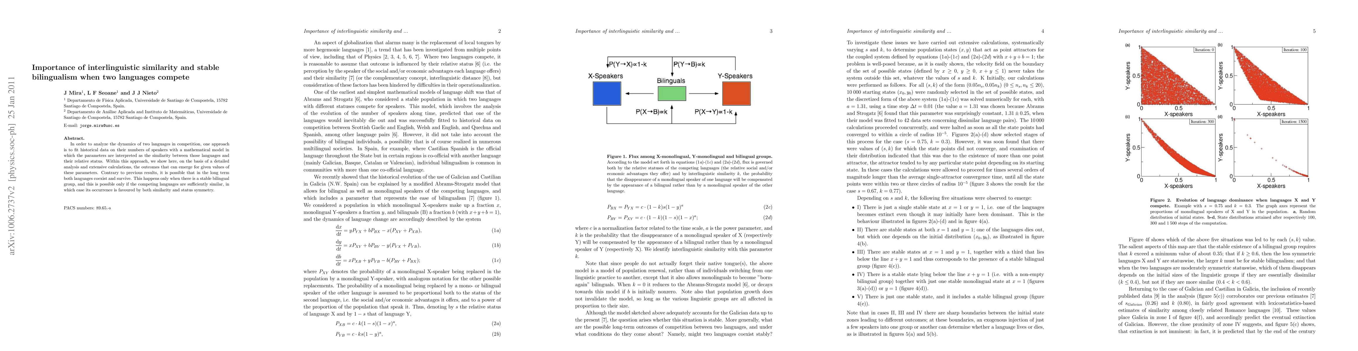 This research demonstrates that in language competition, both languages can coexist and survive in the long term, forming a stable bilingual community. This outcome is favored when languages are sufficiently similar and have symmetrical status.