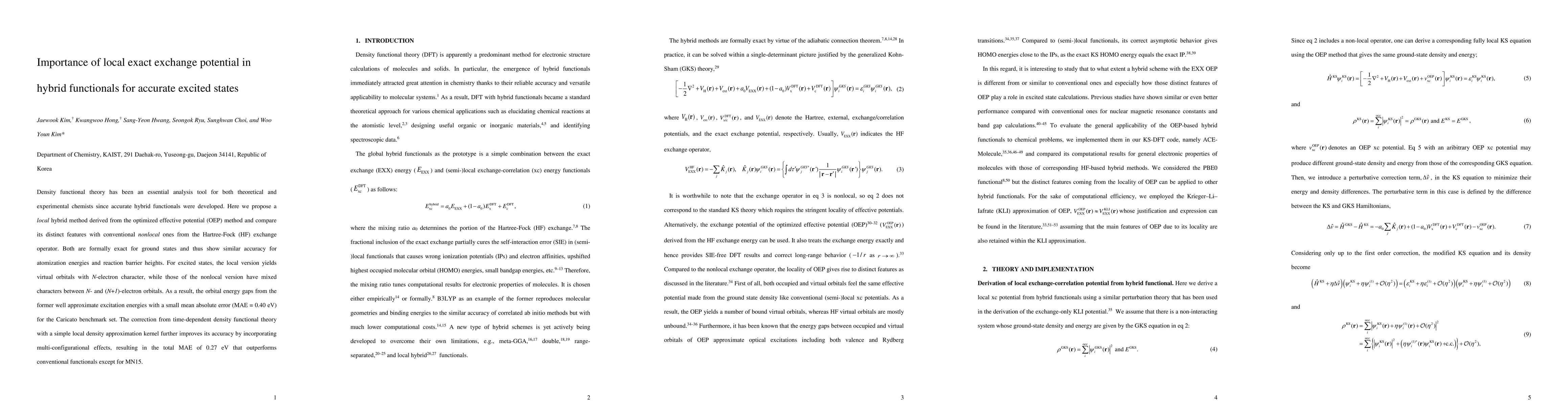 This paper proposes a local exact exchange potential in hybrid functionals derived from the optimized effective potential method, which shows improved accuracy for excited states compared to conventional nonlocal methods. The local version approximates excitation energies with a mean absolute error of 0.40 eV, further reduced to 0.27 eV with time-dependent density functional theory, outperforming most conventional functionals.