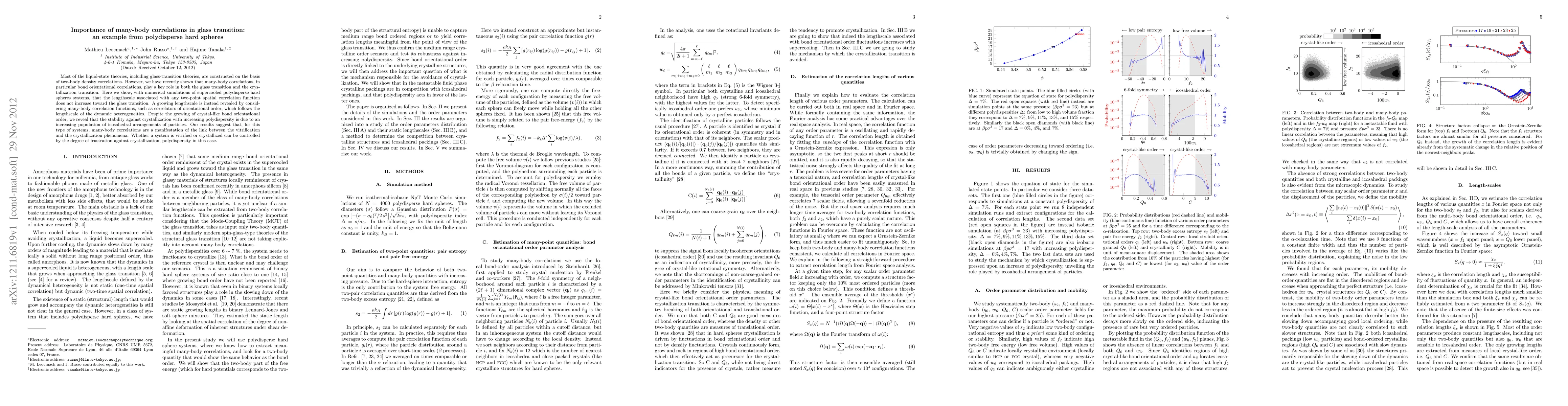 This paper demonstrates that many-body correlations, especially bond orientational correlations, are crucial in understanding glass transition in supercooled polydisperse hard spheres. While traditional theories rely on two-body correlations, the study finds that a growing lengthscale associated with many-body correlations reflects dynamic heterogeneities, suggesting a link between vitrification and crystallization controlled by factors like polydispersity.