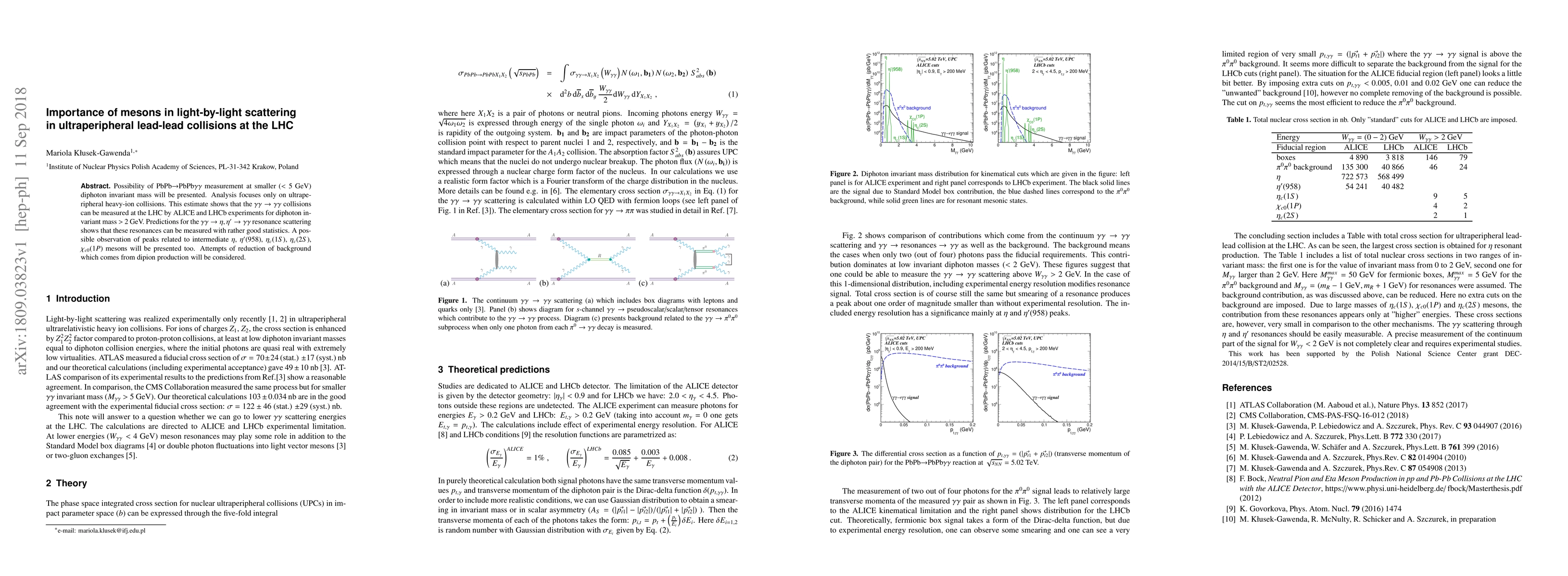 Possibility of PbPb$\to$PbPb$\gamma\gamma$ measurement at smaller (< 5 GeV) diphoton invariant mass will be presented. Analysis focuses only on ultraperipheral heavy-ion collisions. This estimate shows that the $\gamma \gamma \to \gamma \gamma$ collisions can be measured at the LHC by ALICE and LHCb experiments for diphoton invariant mass $>$ 2 GeV. Predictions for the $\gamma\gamma \to \eta, \eta' \to \gamma\gamma$ resonance scattering shows that these resonances can be measured with rather good statistics. A~possible observation of peaks related to intermediate $\eta$, $\eta'(958)$, $\eta_c(1S)$, $\eta_c(2S)$, $\chi_{c0}(1P)$ mesons will be presented too. Attempts of reduction of background which comes from dipion production will be considered.