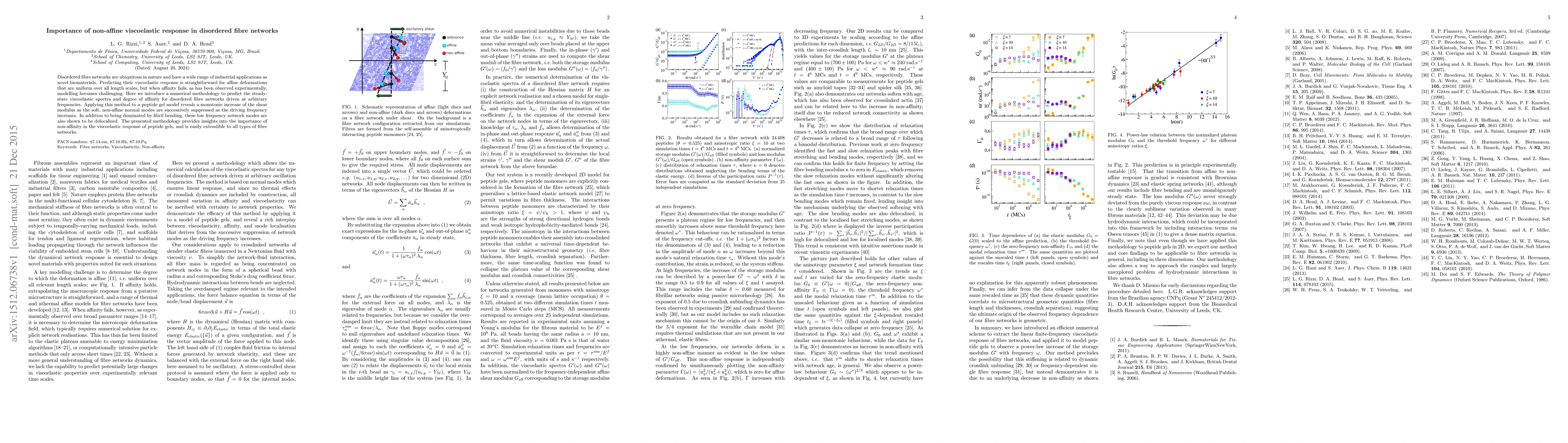 Disordered fibre networks are ubiquitous in nature and have a wide range of industrial applications as novel biomaterials. Predicting their viscoelastic response is straightforward for affine deformations that are uniform over all length scales, but when affinity fails, as has been observed experimentally, modelling becomes challenging. Here we introduce a numerical methodology to predict the steady-state viscoelastic spectra and degree of affinity for disordered fibre networks driven at arbitrary frequencies. Applying this method to a peptide gel model reveals a monotonic increase of the shear modulus as the soft, non-affine normal modes are successively suppressed as the driving frequency increases. In addition to being dominated by fibril bending, these low frequency network modes are also shown to be delocalised. The presented methodology provides insights into the importance of non-affinity in the viscoelastic response of peptide gels, and is easily extendible to all types of fibre networks.