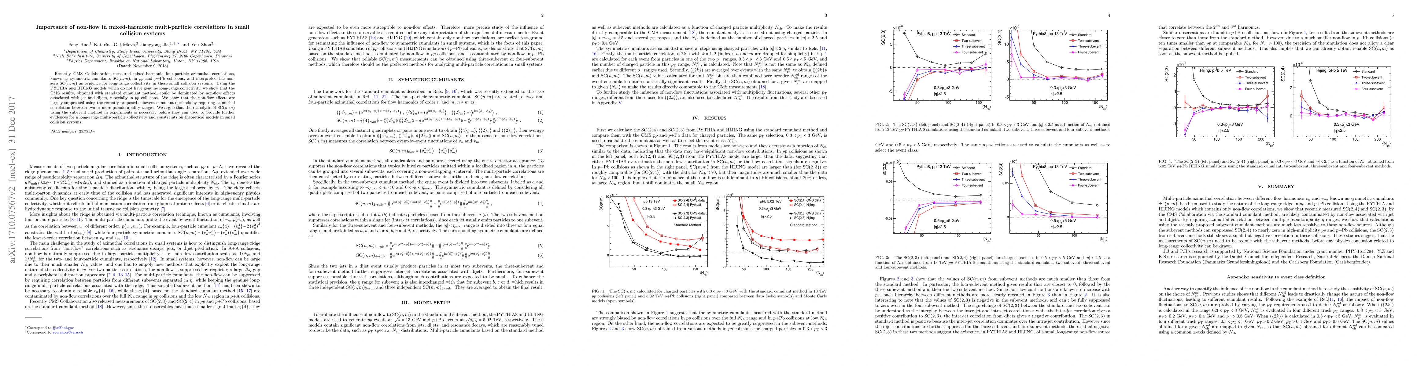Recently CMS Collaboration measured mixed-harmonic four-particle azimuthal correlations, known as symmetric cumulants SC(n,m), in pp and pPb collisions, and interpreted the non-zero SC(n,m) as evidence for long-range collectivity in these small collision systems. Using the PYTHIA and HIJING models which do not have genuine long-range collectivity, we show that the CMS results, obtained with standard cumulant method, could be dominated by non-flow effects associated with jet and dijets, especially in $pp$ collisions. We show that the non-flow effects are largely suppressed using the recently proposed subevent cumulant methods by requiring azimuthal correlation between two or more pseudorapidity ranges. We argue that the reanalysis of SC(n,m) using the subevent method in experiments is necessary before they can used to provide further evidences for a long-range multi-particle collectivity and constraints on theoretical models in small collision systems.