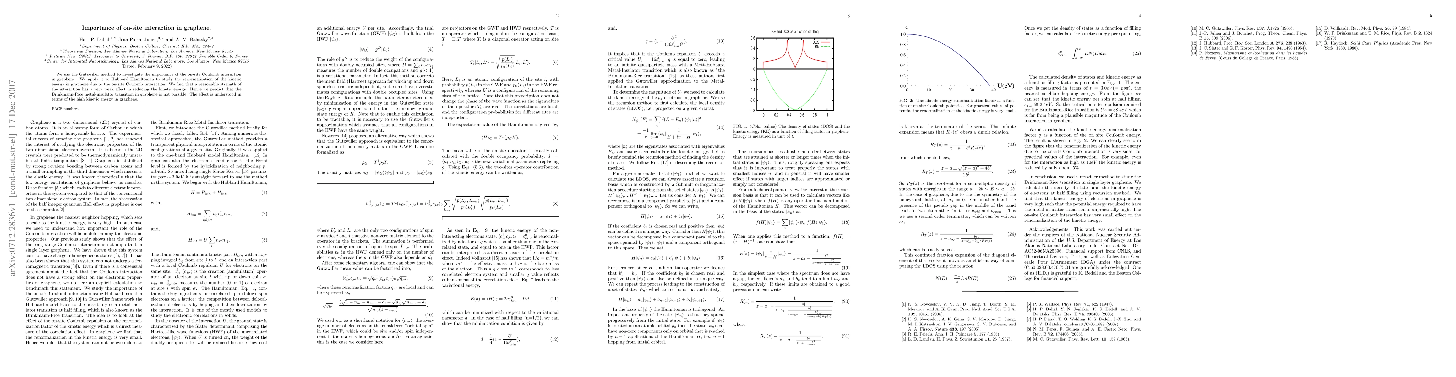 This study uses the Gutzwiller method to analyze the impact of on-site Coulomb interaction in graphene, finding minimal kinetic energy reduction and concluding that the Brinkmann-Rice metal-insulator transition is unlikely due to graphene's high kinetic energy.