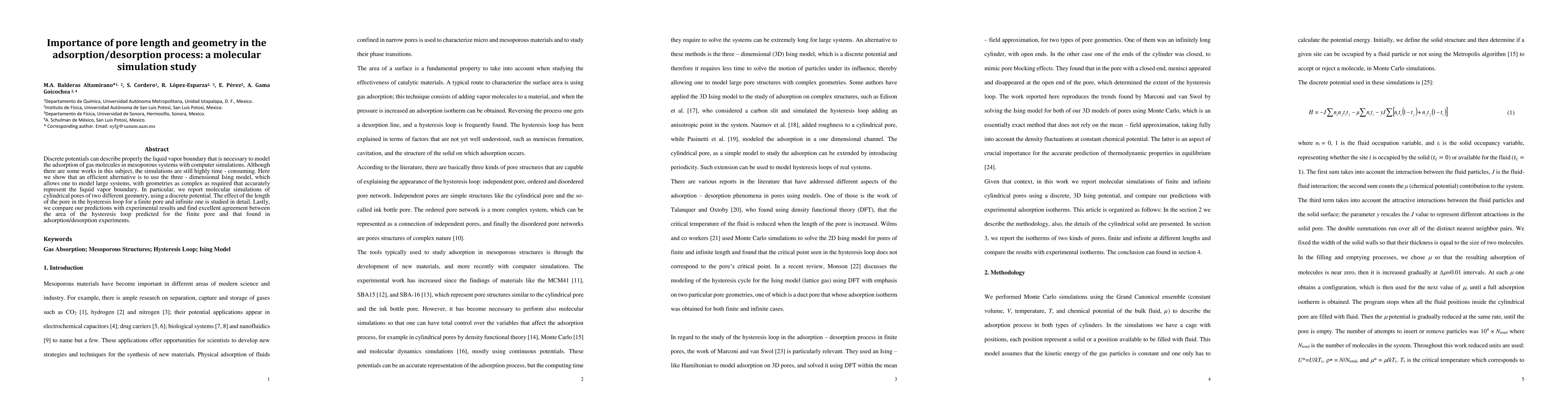 This paper explores the use of the three-dimensional Ising model for efficient molecular simulations of gas adsorption in mesoporous systems, focusing on the impact of pore length and geometry on adsorption/desorption processes. The study finds excellent agreement between simulation predictions and experimental results for the hysteresis loop area in finite pores.