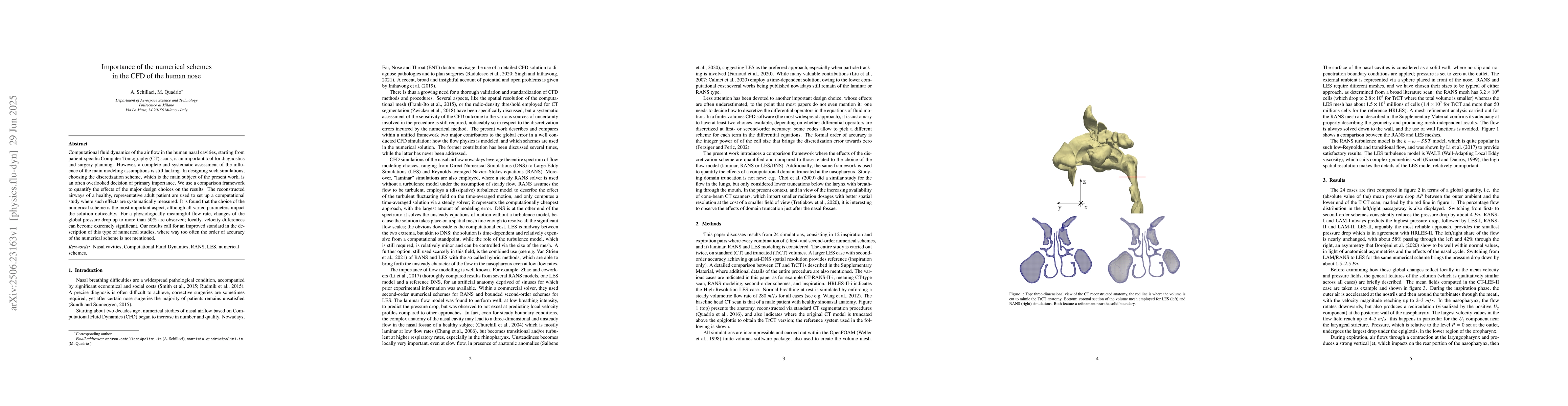 Computational fluid dynamics of the air flow in the human nasal cavities, starting from patient-specific Computer Tomography (CT) scans, is an important tool for diagnostics and surgery planning. However, a complete and systematic assessment of the influence of the main modeling assumptions is still lacking. In designing such simulations, choosing the discretization scheme, which is the main subject of the present work, is an often overlooked decision of primary importance. We use a comparison framework to quantify the effects of the major design choices on the results. The reconstructed airways of a healthy, representative adult patient are used to set up a computational study where such effects are systematically measured. It is found that the choice of the numerical scheme is the most important aspect, although all varied parameters impact the solution noticeably. For a physiologically meaningful flow rate, changes of the global pressure drop up to more than 50\% are observed; locally, velocity differences can become extremely significant. Our results call for an improved standard in the description of this type of numerical studies, where way too often the order of accuracy of the numerical scheme is not mentioned.