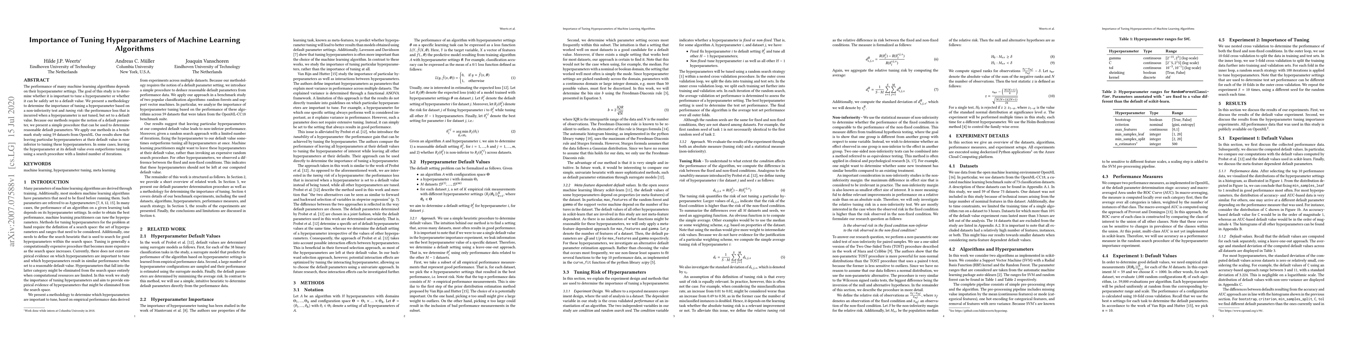 The performance of many machine learning algorithms depends on their hyperparameter settings. The goal of this study is to determine whether it is important to tune a hyperparameter or whether it can be safely set to a default value. We present a methodology to determine the importance of tuning a hyperparameter based on a non-inferiority test and tuning risk: the performance loss that is incurred when a hyperparameter is not tuned, but set to a default value. Because our methods require the notion of a default parameter, we present a simple procedure that can be used to determine reasonable default parameters. We apply our methods in a benchmark study using 59 datasets from OpenML. Our results show that leaving particular hyperparameters at their default value is non-inferior to tuning these hyperparameters. In some cases, leaving the hyperparameter at its default value even outperforms tuning it using a search procedure with a limited number of iterations.