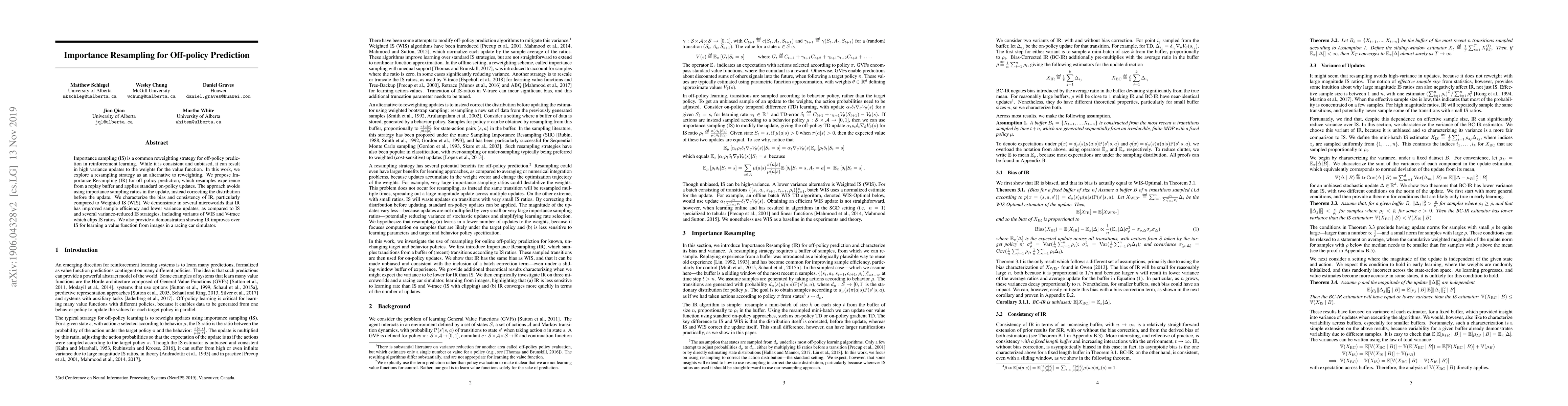 Researchers propose a new approach to off-policy prediction in reinforcement learning called Importance Resampling (IR), which reduces variance updates and improves sample efficiency compared to traditional methods like Importance Sampling.
