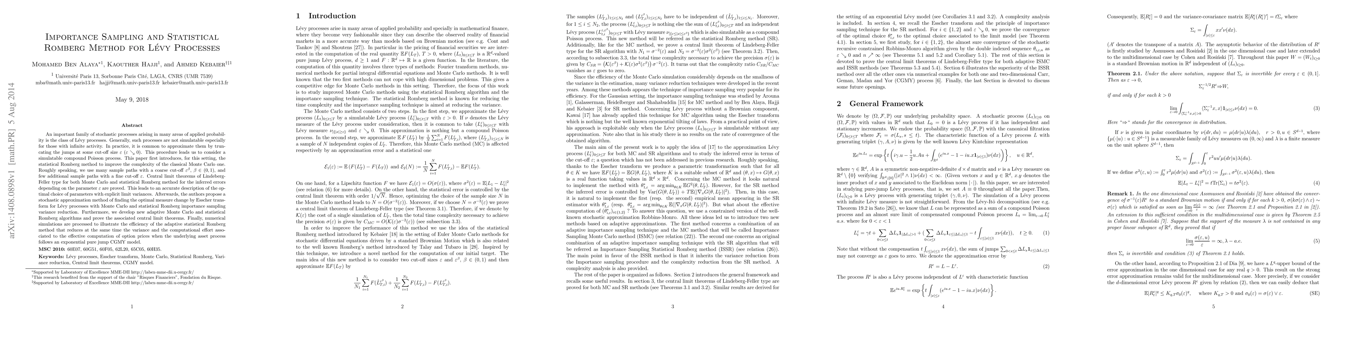 This paper explores the statistical Romberg method for approximating Lévy processes, particularly those with infinite activity, by introducing an adaptive approach that combines Monte Carlo simulations with importance sampling. The authors develop new adaptive algorithms and prove central limit theorems, demonstrating the method's efficiency in reducing variance and computational effort for option pricing under Lévy processes.