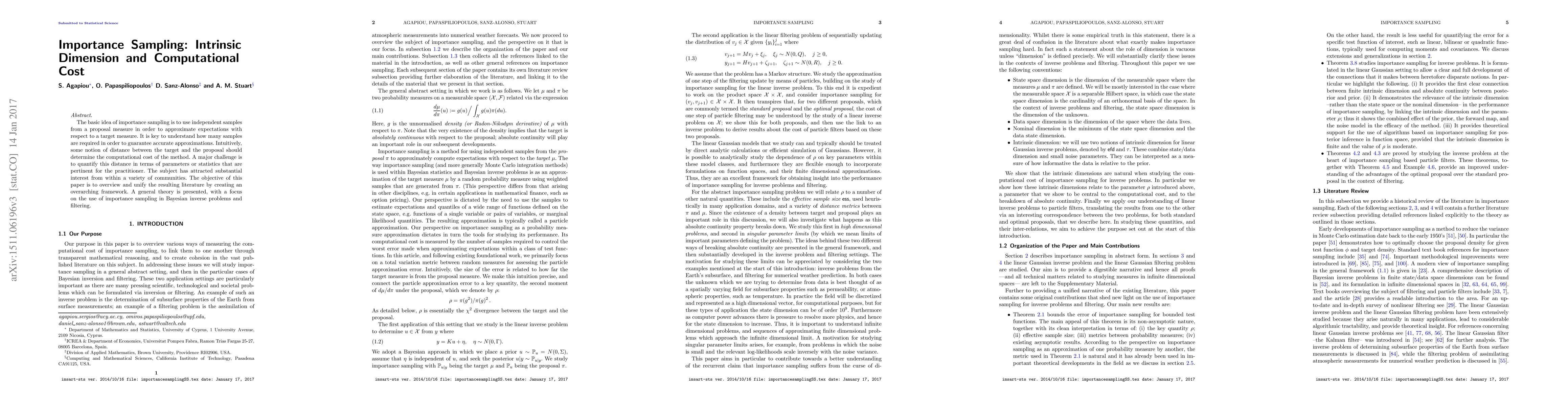 The basic idea of importance sampling is to use independent samples from a proposal measure in order to approximate expectations with respect to a target measure. It is key to understand how many samples are required in order to guarantee accurate approximations. Intuitively, some notion of distance between the target and the proposal should determine the computational cost of the method. A major challenge is to quantify this distance in terms of parameters or statistics that are pertinent for the practitioner. The subject has attracted substantial interest from within a variety of communities. The objective of this paper is to overview and unify the resulting literature by creating an overarching framework. A general theory is presented, with a focus on the use of importance sampling in Bayesian inverse problems and filtering.