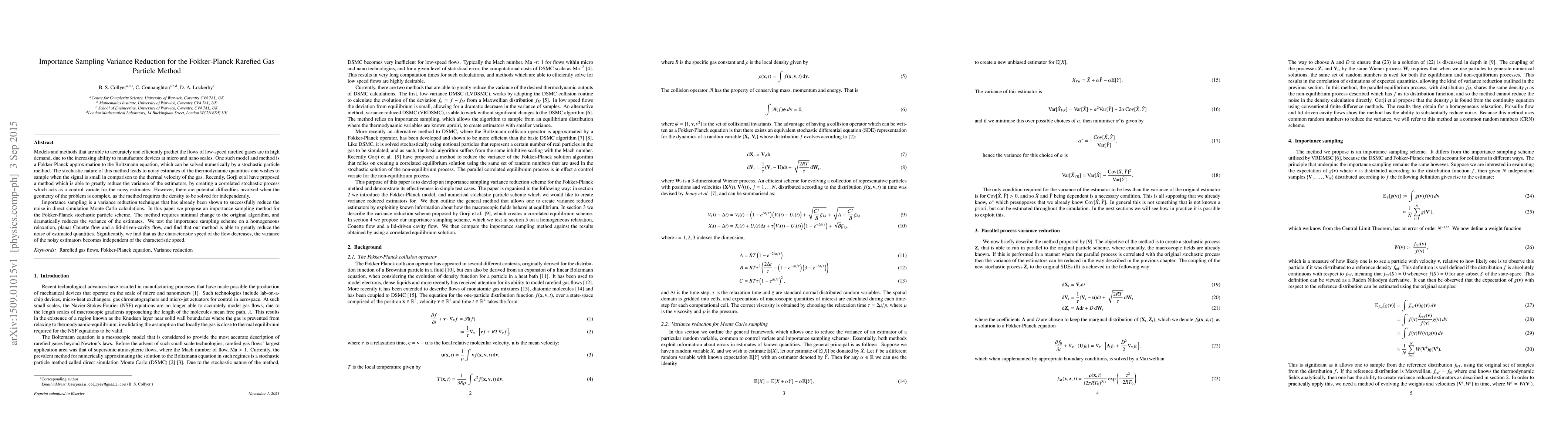 Researchers propose an importance sampling method to reduce variance in numerical simulations of low-speed rarefied gas flows, achieving significant noise reduction with minimal algorithm changes.