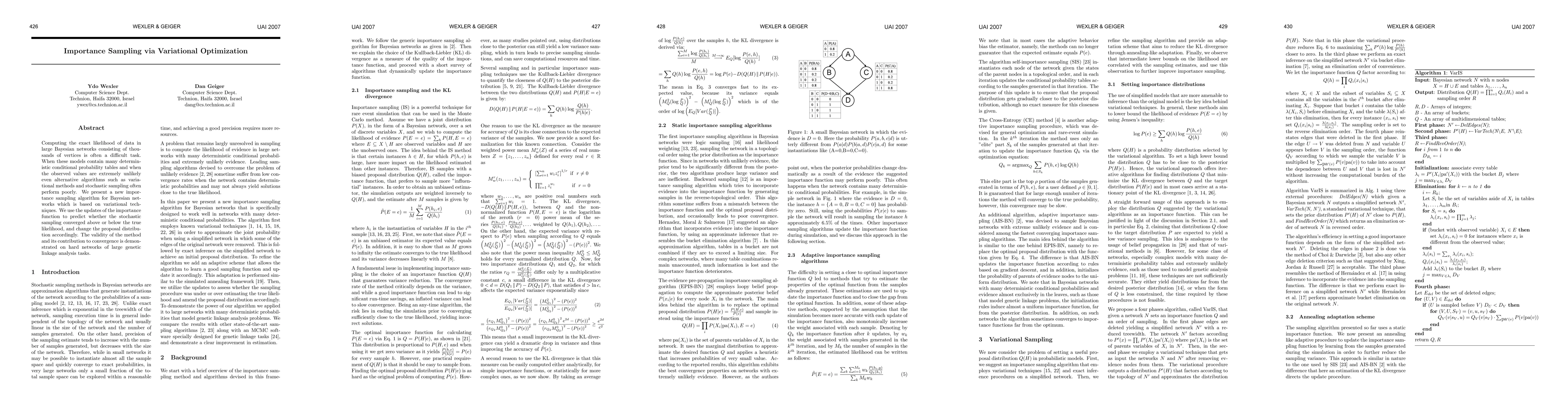This paper introduces a novel importance sampling algorithm for Bayesian networks based on variational optimization, which adjusts the proposal distribution to improve convergence by predicting whether stochastic sampling is above or below the true likelihood. The method is validated through its application to complex genetic linkage analysis tasks.
