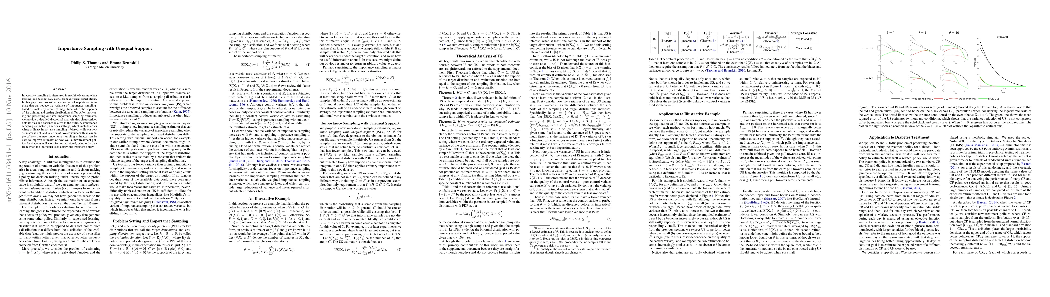 Importance sampling is often used in machine learning when training and testing data come from different distributions. In this paper we propose a new variant of importance sampling that can reduce the variance of importance sampling-based estimates by orders of magnitude when the supports of the training and testing distributions differ. After motivating and presenting our new importance sampling estimator, we provide a detailed theoretical analysis that characterizes both its bias and variance relative to the ordinary importance sampling estimator (in various settings, which include cases where ordinary importance sampling is biased, while our new estimator is not, and vice versa). We conclude with an example of how our new importance sampling estimator can be used to improve estimates of how well a new treatment policy for diabetes will work for an individual, using only data from when the individual used a previous treatment policy.