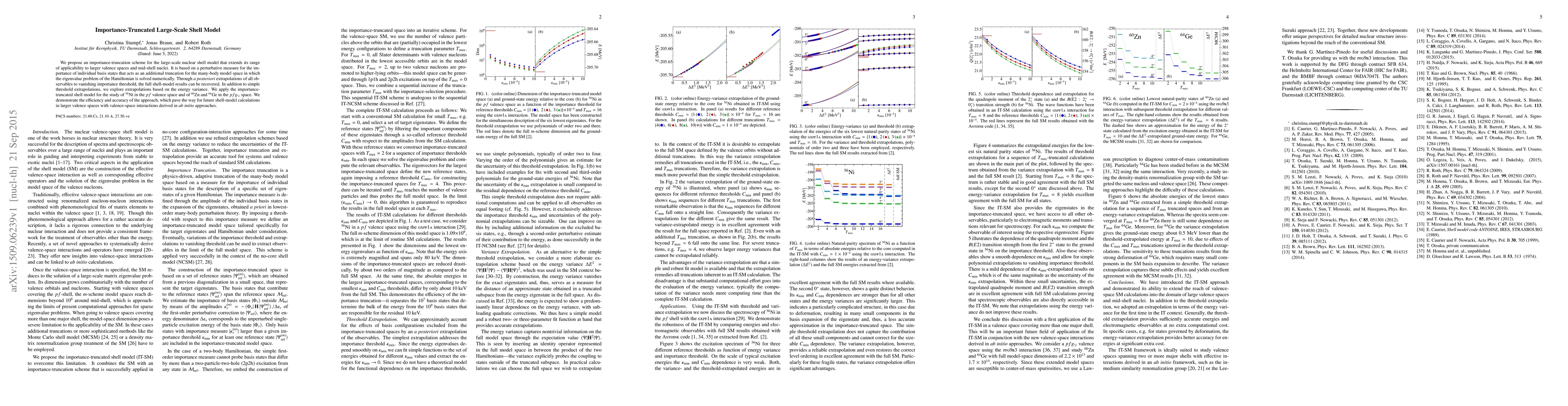 This paper proposes an importance-truncation scheme for the large-scale nuclear shell model, enabling calculations in larger valence spaces and mid-shell nuclei. The method uses a perturbative measure to truncate basis states and allows for recovery of full shell-model results via extrapolations, demonstrating efficiency and accuracy for isotopes like 56-Ni, 60-Zn, and 64-Ge.