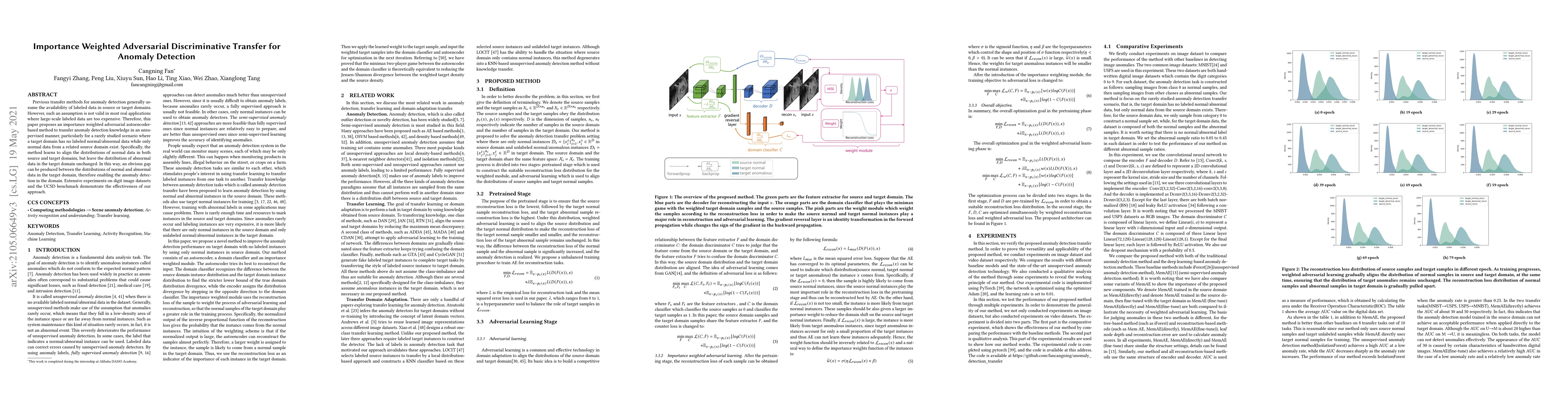 This paper proposes an unsupervised method for anomaly detection using importance weighted adversarial autoencoders, designed to transfer knowledge from a source domain with labeled normal data to a target domain with no labeled data. The method aligns normal data distributions while preserving abnormal data, creating a detectable gap for anomaly detection. Experiments on synthetic and real datasets show its effectiveness.