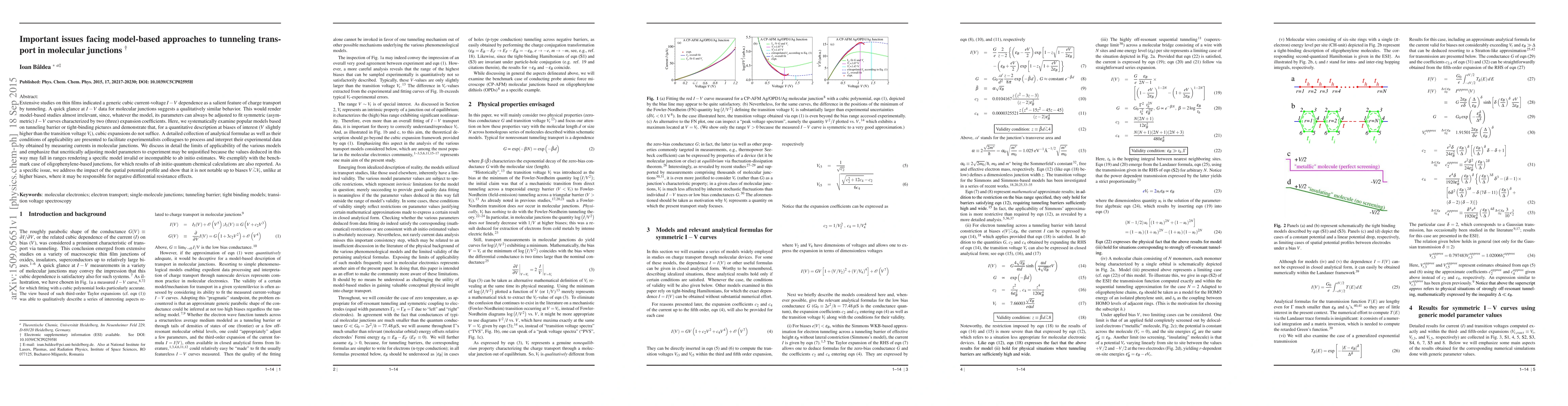 This study investigates model-based approaches to tunneling transport in molecular junctions, finding that cubic current-voltage curves do not accurately describe the behavior at relevant biases.