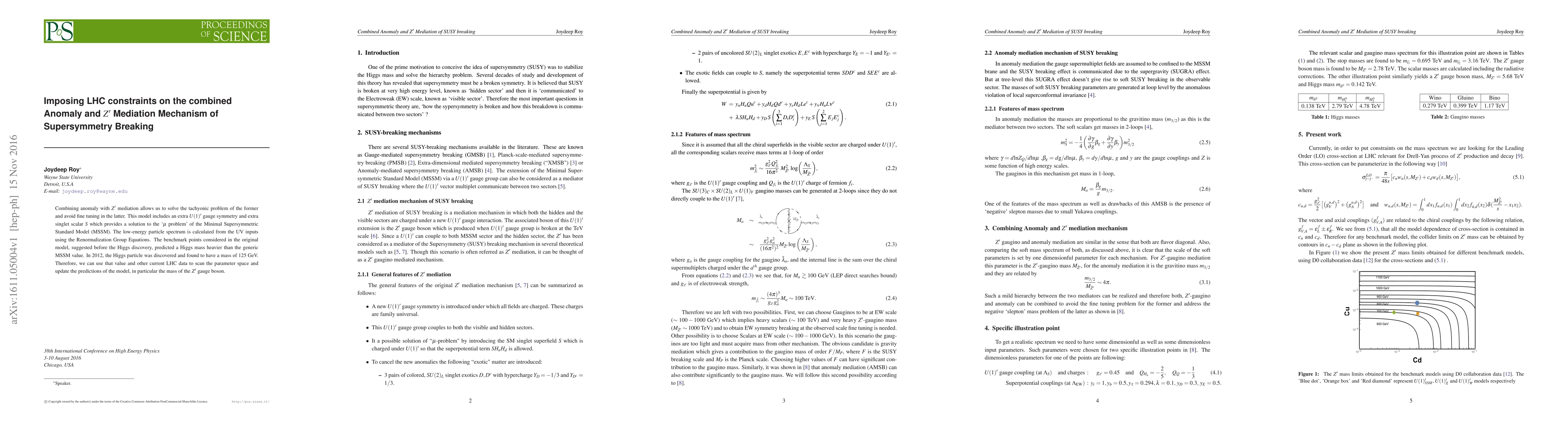 This paper combines anomaly mediation with $Z^\prime$ mediation to address the tachyonic problem and fine-tuning issues in supersymmetry breaking. It uses Renormalization Group Equations to update predictions based on the 125 GeV Higgs mass and current LHC data, particularly focusing on the $Z^\prime$ gauge boson mass.