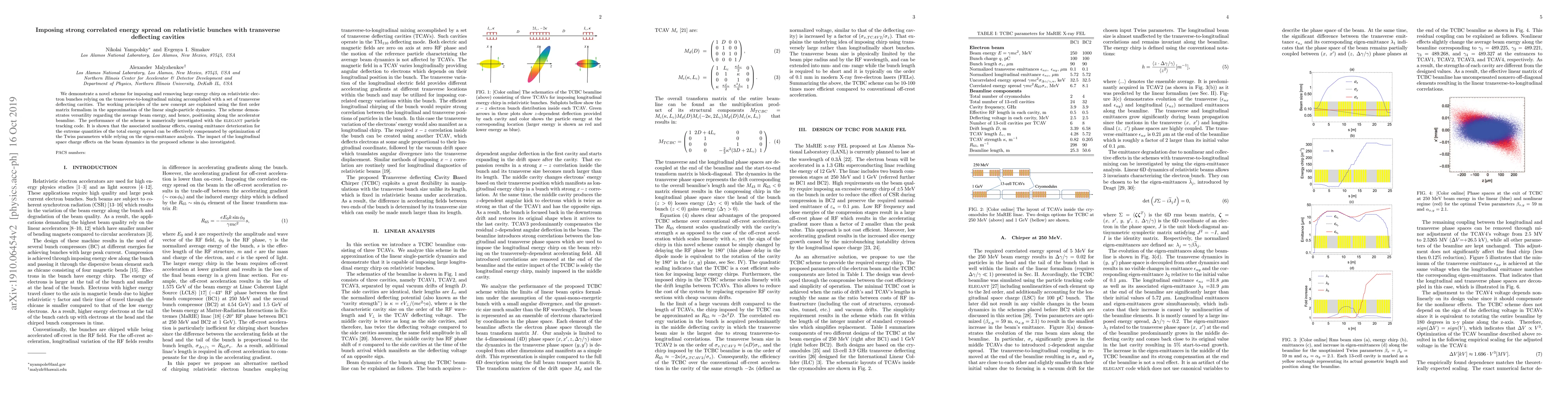This paper introduces a novel method for manipulating large energy chirp in relativistic electron bunches using transverse deflecting cavities, which mix transverse and longitudinal dynamics. The scheme is shown to be versatile and effective, with nonlinear effects mitigated through optimization of Twiss parameters and eigen-emittance analysis.