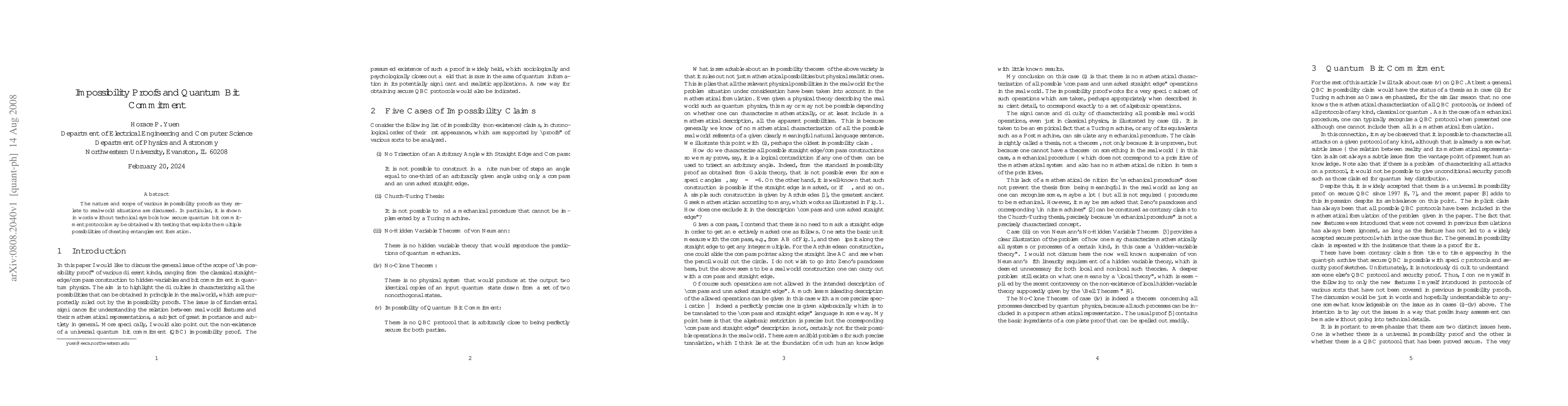 This paper explores the implications of impossibility proofs in real-world scenarios, demonstrating that secure quantum bit commitment protocols can be achieved through testing that leverages the unique properties of entanglement and potential cheating strategies.