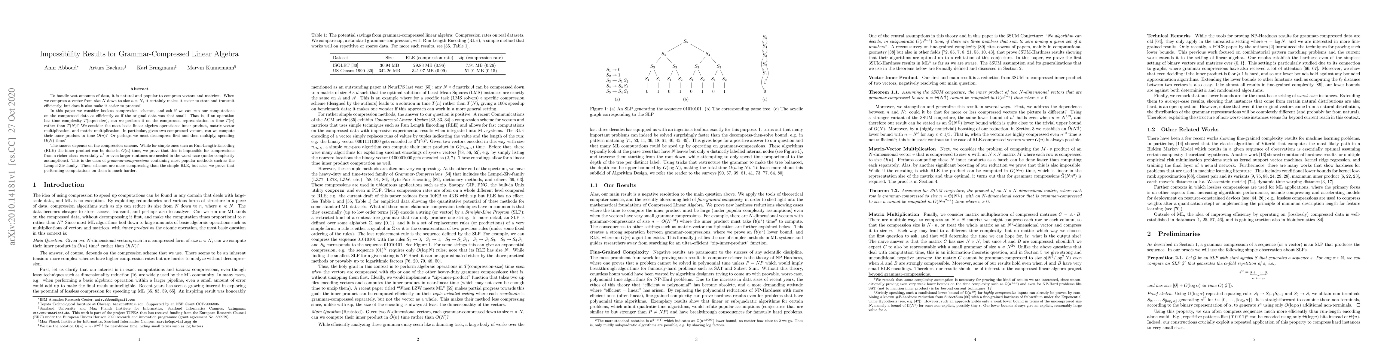 This paper investigates the efficiency of computations on grammar-compressed linear algebra operations. It finds that while simple compression methods like Run-Length-Encoding allow basic operations like inner product to be performed in linear time, more effective grammar-compression methods require quadratic or worse runtimes for the same operations, demonstrating the trade-off between compression efficiency and computational efficiency.
