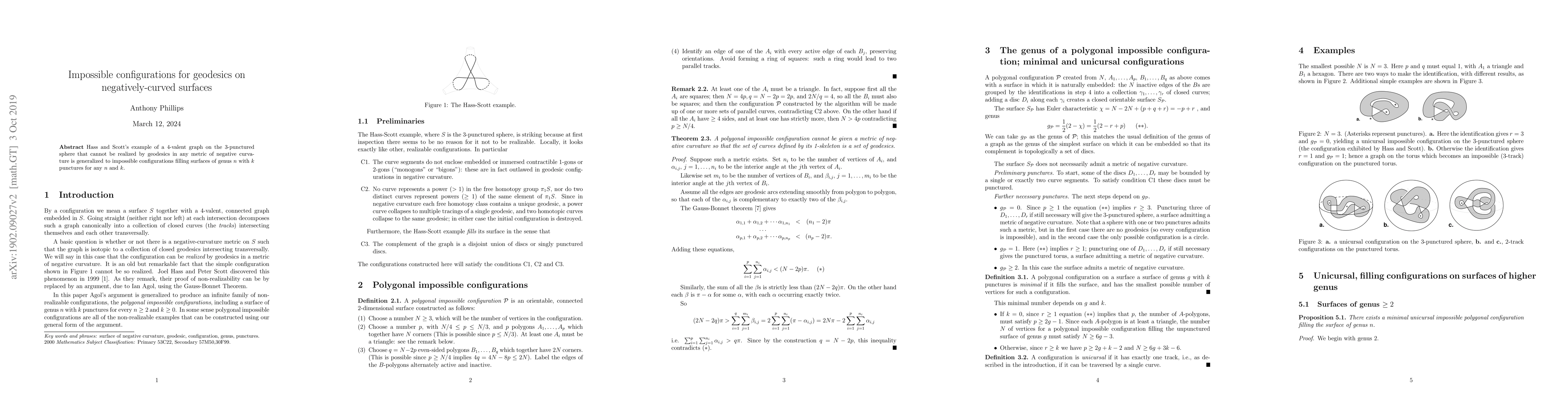 Hass and Scott's example of a 4-valent graph on the 3-punctured sphere that cannot be realized by geodesics in any metric of negative curvature is generalized to impossible configurations filling surfaces of genus $n$ with $k$ punctures for any $n$ and $k$.