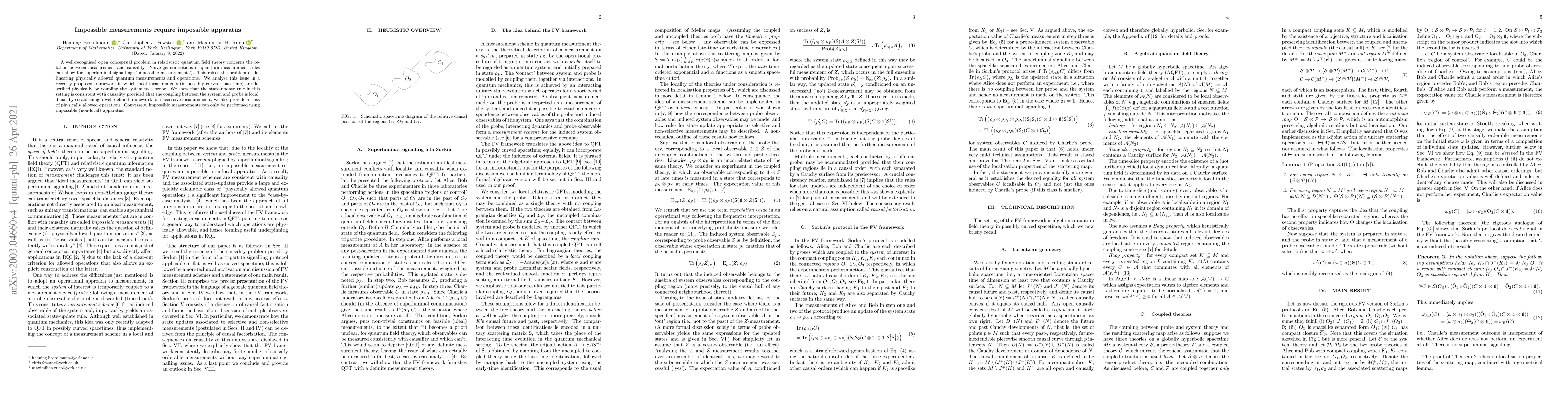 This paper addresses the issue of superluminal signalling in relativistic quantum field theory by proposing a framework where local measurements are described through local coupling between the system and a probe. The authors demonstrate that this framework maintains causality and allows for a well-defined class of physically allowed operations, while impossible measurements necessitate the use of non-local (impossible) apparatus.