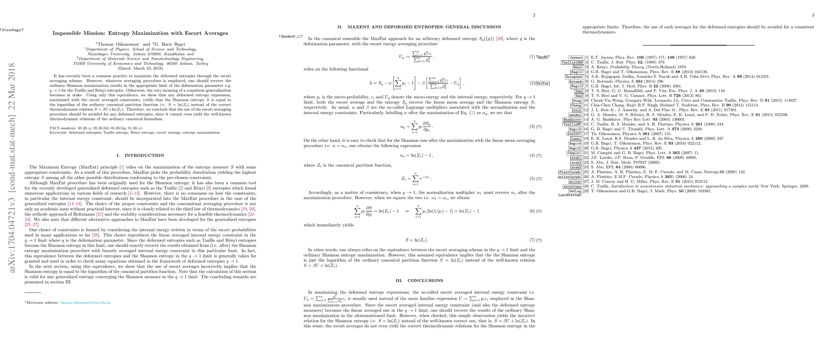 This paper argues that employing escort averaging in maximizing deformed entropies fails to recover the ordinary Shannon entropy results, leading to incorrect thermodynamic relations. It concludes that escort averaging should be avoided for deformed entropies due to its inconsistency.