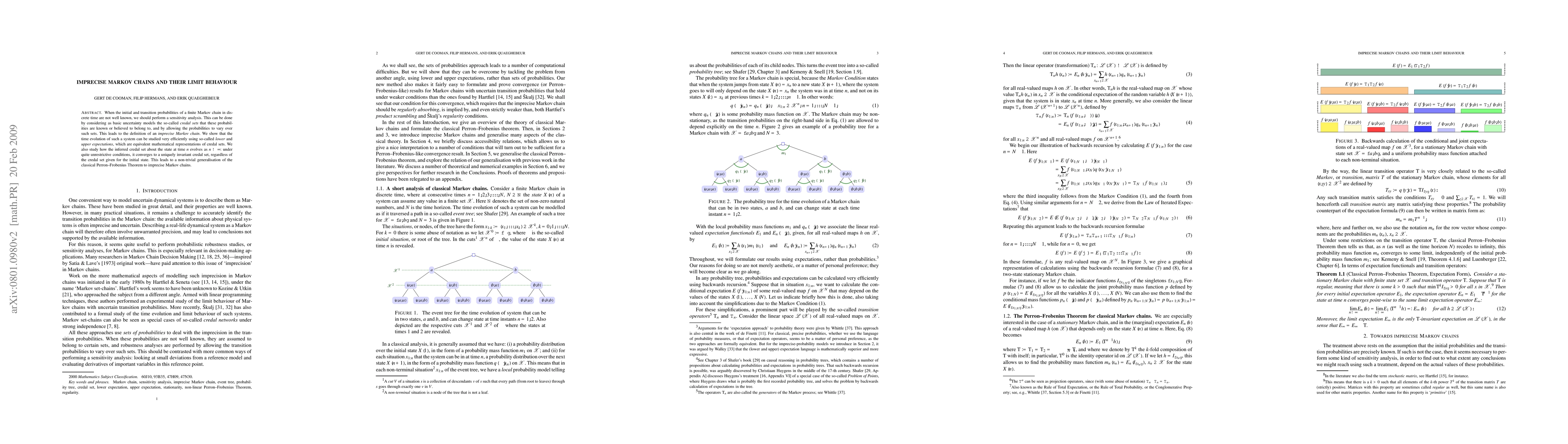 This paper explores imprecise Markov chains where initial and transition probabilities are uncertain, modeled using credal sets. It demonstrates the use of lower and upper expectations to study their time evolution and shows that under general conditions, the system's state converges to a uniquely invariant credal set, generalizing the classical Perron-Frobenius Theorem.