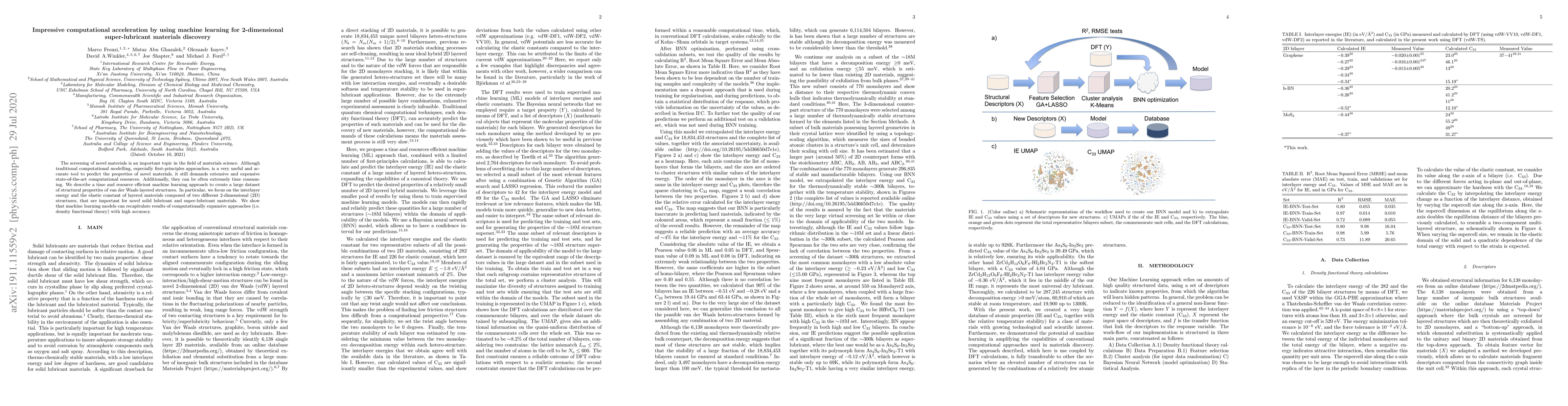 The screening of novel materials is an important topic in the field of materials science. Although traditional computational modeling, especially first-principles approaches, is a very useful and accurate tool to predict the properties of novel materials, it still demands extensive and expensive state-of-the-art computational resources. Additionally, they can be often extremely time consuming. We describe a time and resource-efficient machine learning approach to create a large dataset of structural properties of van der Waals layered structures. In particular, we focus on the interlayer energy and the elastic constant of layered materials composed of two different 2-dimensional (2D) structures, that are important for novel solid lubricant and super-lubricant materials. We show that machine learning models can recapitulate results of computationally expansive approaches (i.e. density functional theory) with high accuracy.