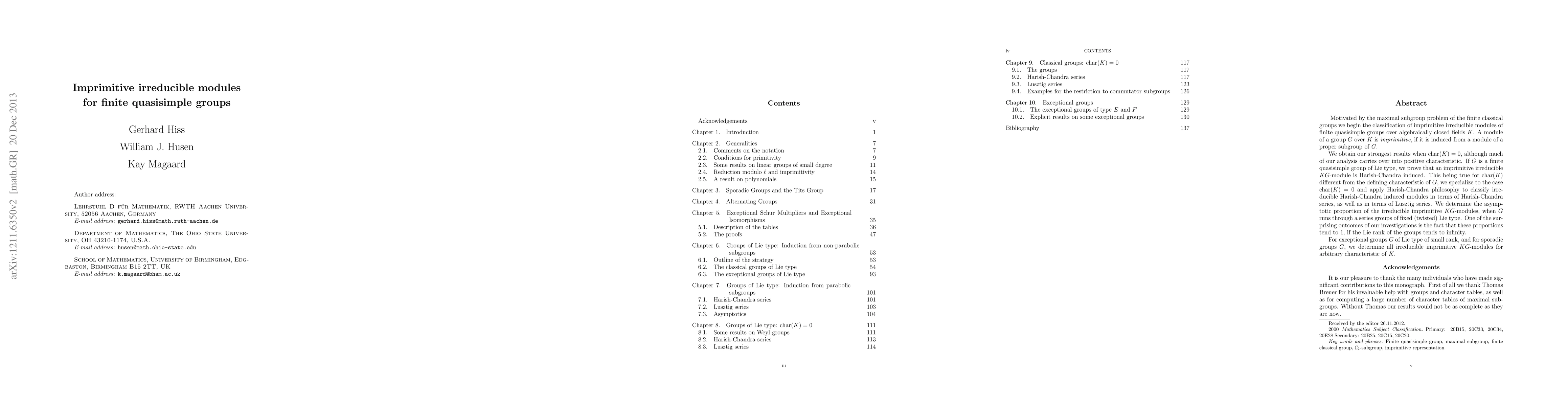 This paper classifies imprimitive irreducible modules for finite quasisimple groups, particularly focusing on those over fields of characteristic 0 and extending results to positive characteristic. It demonstrates that imprimitive irreducible modules for quasisimple groups of Lie type are Harish-Chandra induced and classifies these modules using Harish-Chandra and Lusztig series, revealing that most irreducible modules are imprimitive.