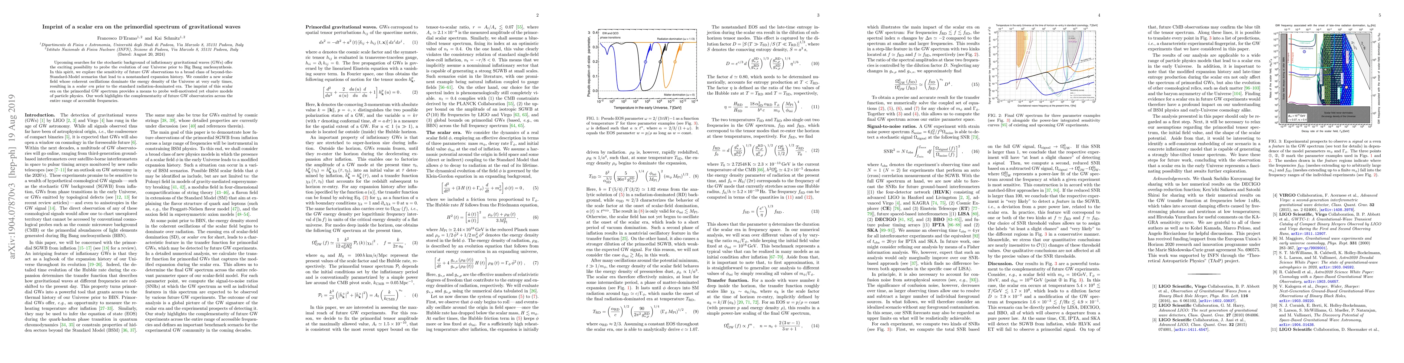 This paper investigates how a scalar era—where a new scalar field dominates the Universe's energy density—affects the primordial gravitational wave spectrum. It highlights the potential of future gravitational wave observatories to probe beyond-standard-model physics by detecting the imprint of this scalar era on the gravitational wave background.