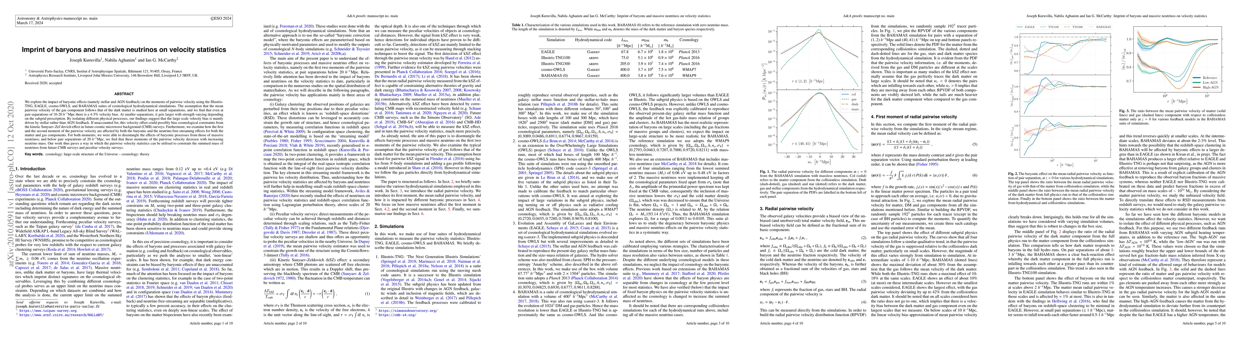 Simulations show a 4-5% velocity bias at small separations due to baryonic effects, mainly driven by stellar feedback, which could impact cosmological constraints from future CMB surveys.