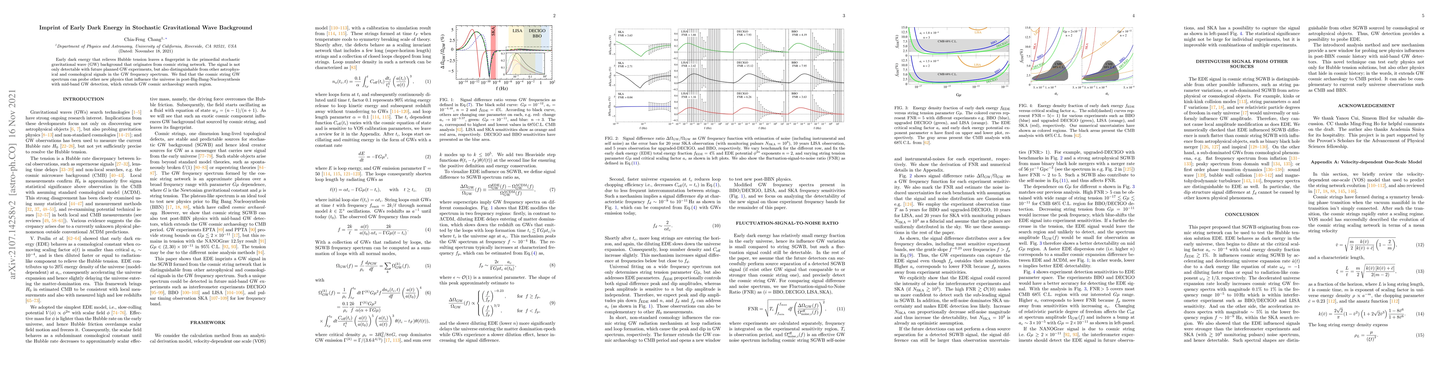 The research identifies a unique gravitational wave (GW) signature from early dark energy, distinguishable with future GW experiments. This signature, originating from cosmic strings, could also reveal other post-BBN new physics, expanding GW cosmic archaeology.