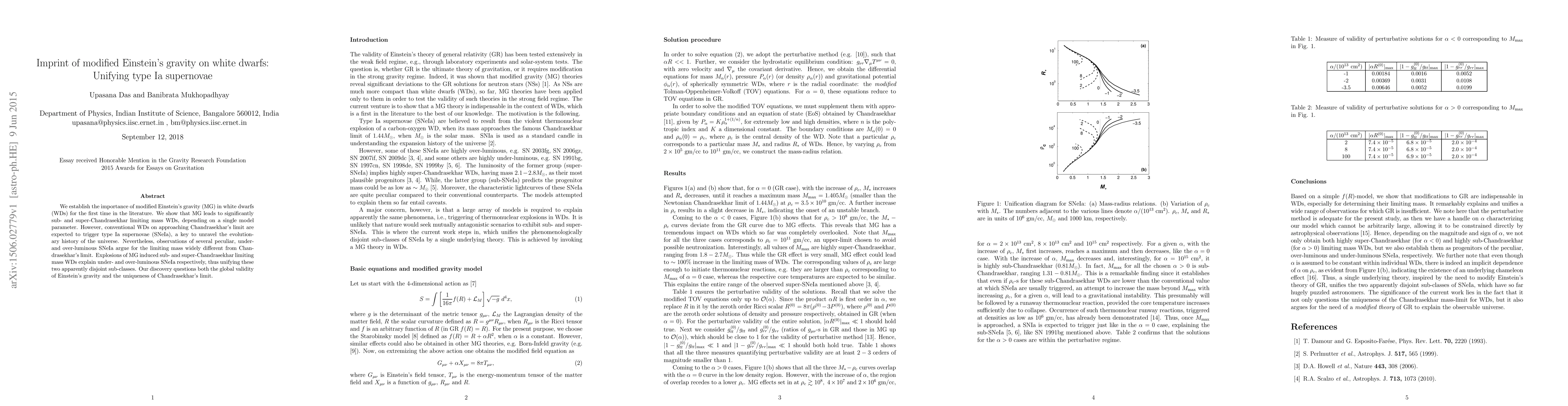 This paper demonstrates that modified Einstein's gravity can produce white dwarfs with masses below and above the traditional Chandrasekhar limit, potentially explaining the diverse luminosity observed in type Ia supernovae. It challenges the universality of Einstein's gravity and the uniqueness of the Chandrasekhar limit.
