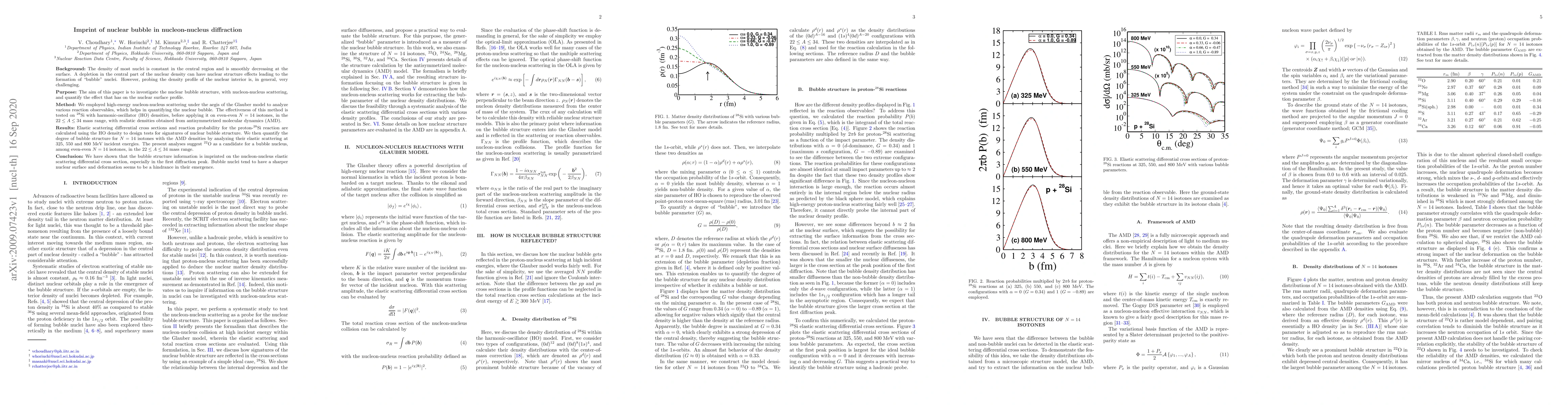 This paper investigates the nuclear bubble structure using high-energy nucleon-nucleus scattering and the Glauber model, finding that $^{22}$O exhibits bubble characteristics among $N = 14$ isotones. The study reveals that bubble nuclei have a sharper nuclear surface, with deformation acting as a hindrance to their formation.