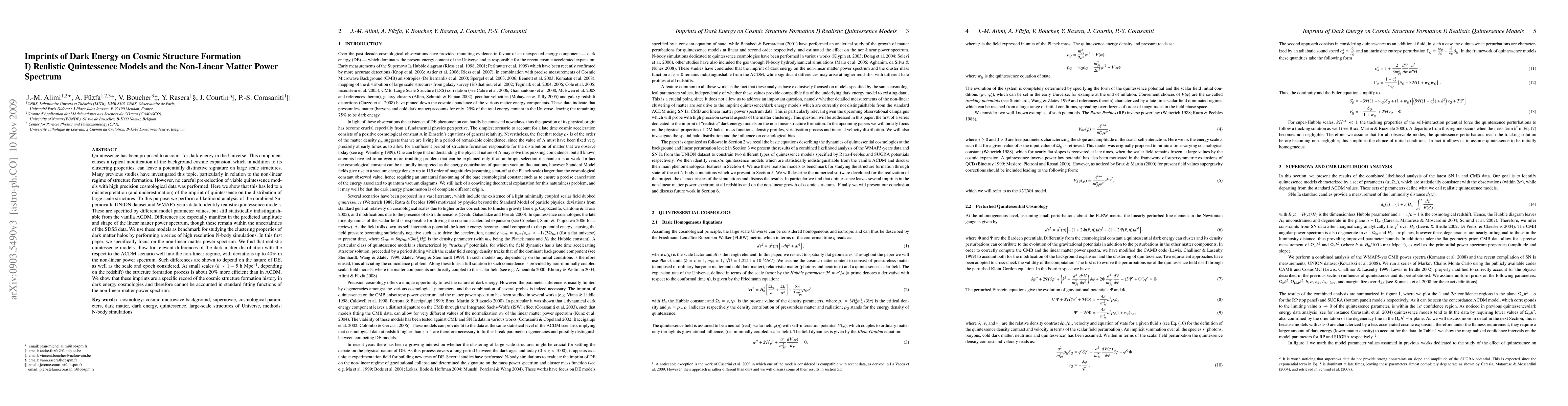 This paper investigates the effects of realistic quintessence models on cosmic structure formation, finding that these models can lead to up to 40% differences in the non-linear matter power spectrum compared to the LambdaCDM model. The study uses high-precision cosmological data and N-body simulations to reveal that quintessence imprints are distinct and cannot be captured by standard fitting functions.